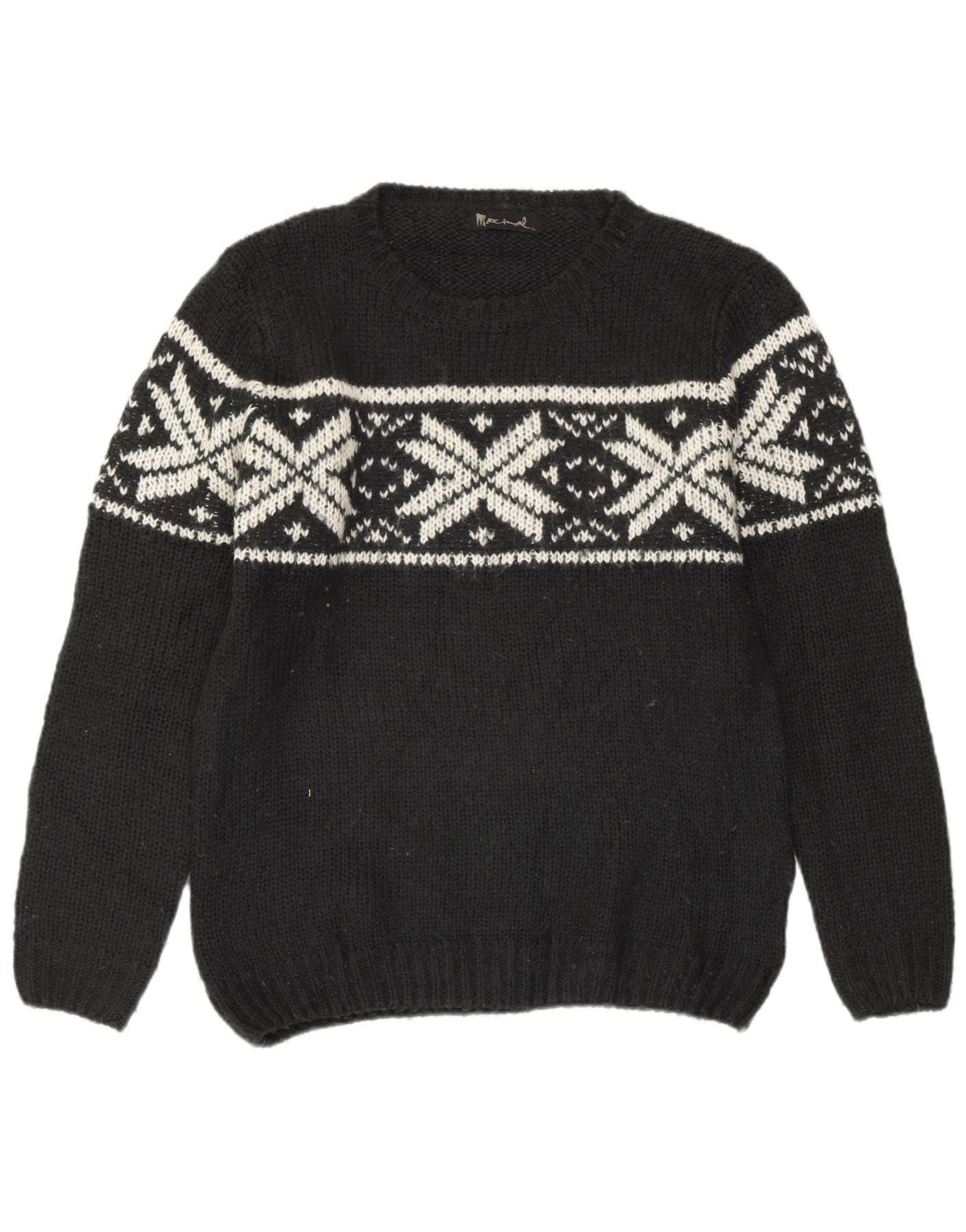 ВИНТАЖНЫЙ женский джемпер с круглым вырезом, Великобритания, 16, большой черный, шерсть Fair Isle