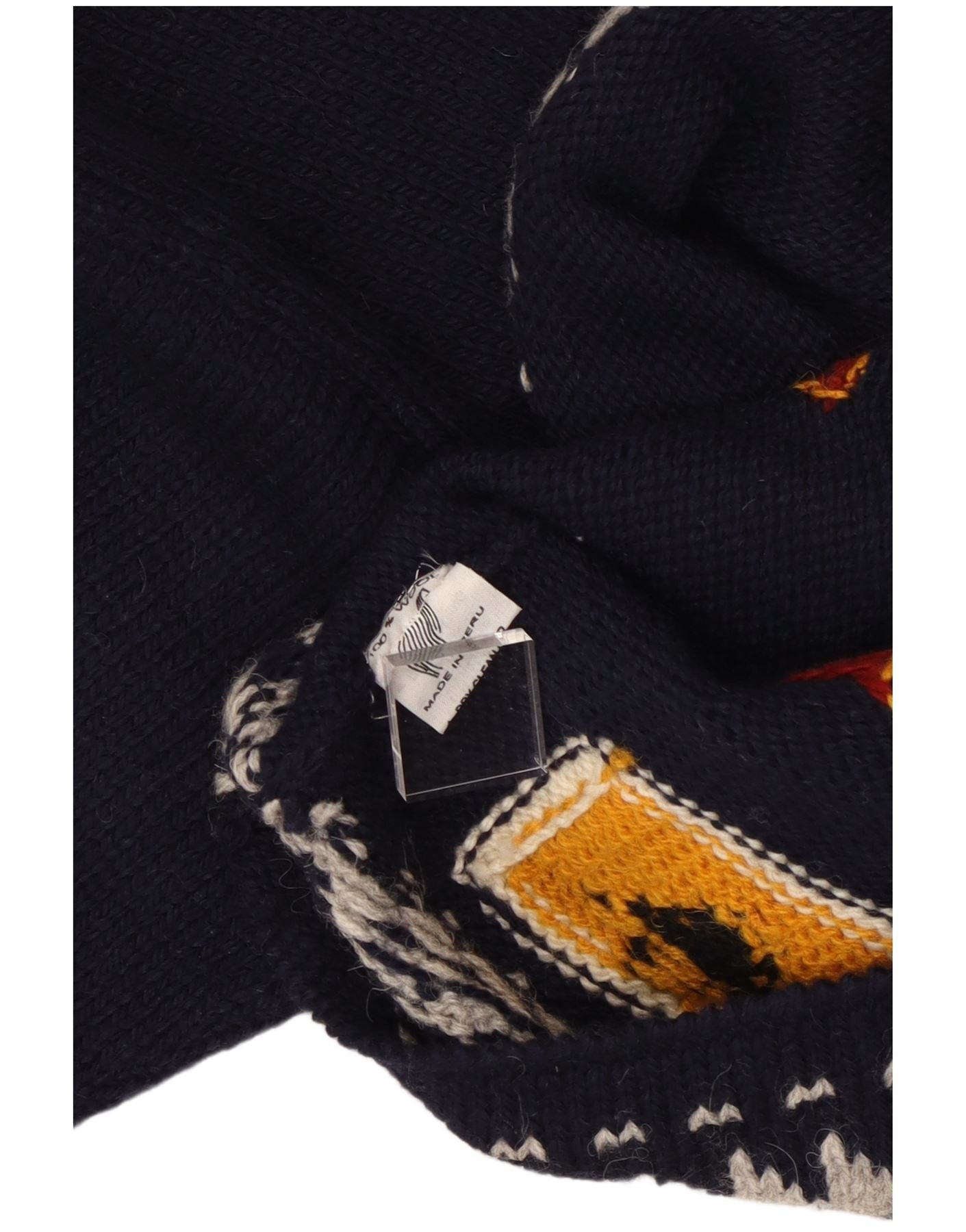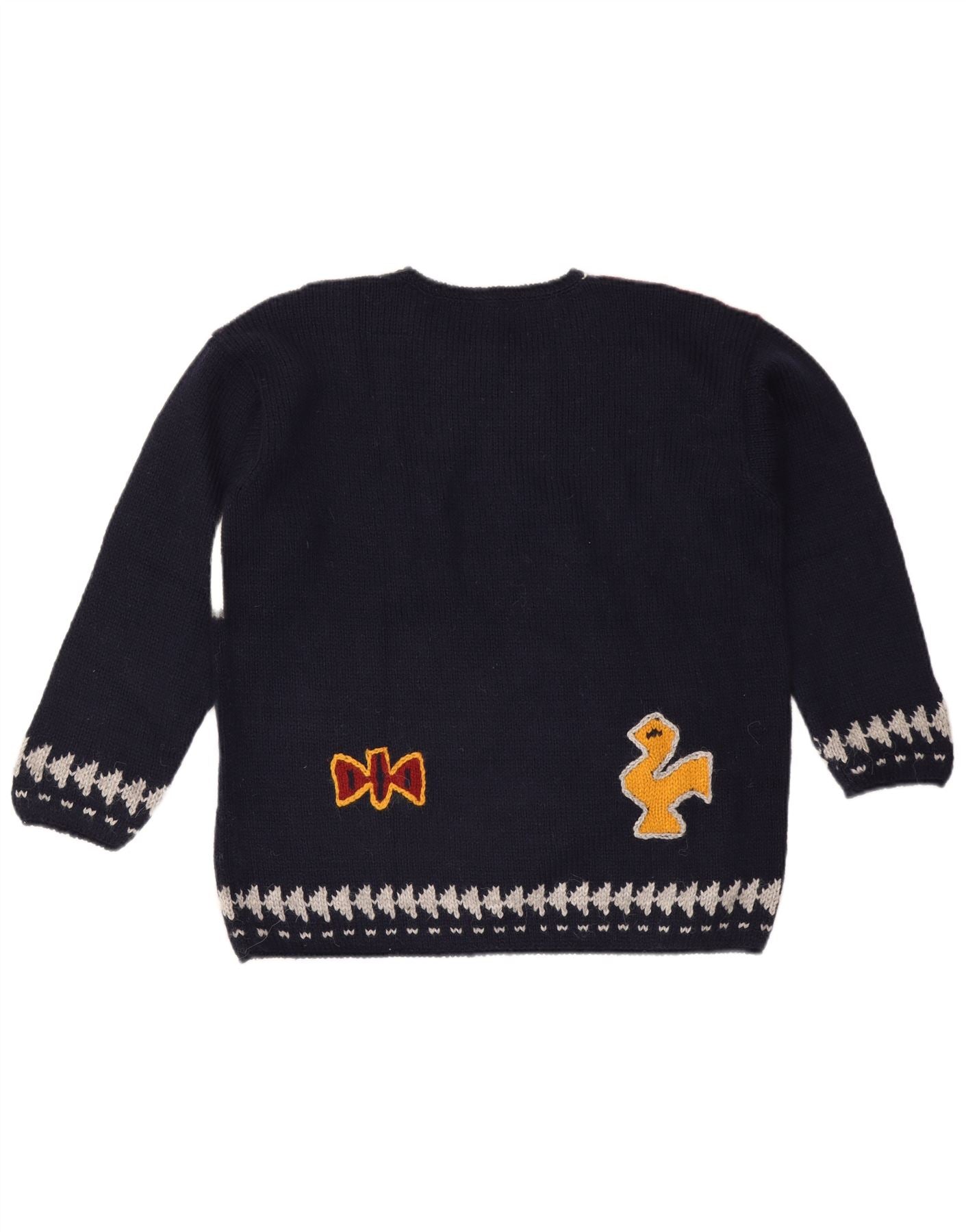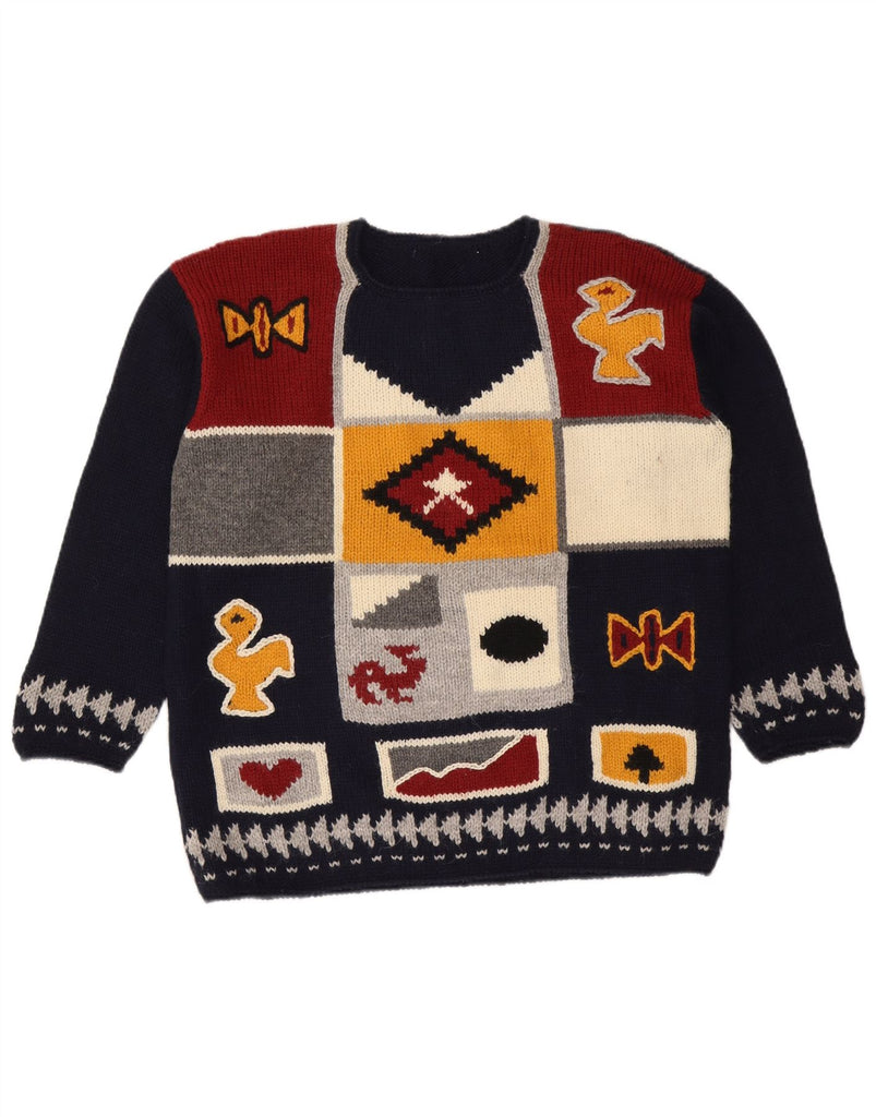 ВИНТАЖНЫЙ женский джемпер с круглым вырезом, Великобритания 16, большой темно-синий с геометрическим узором