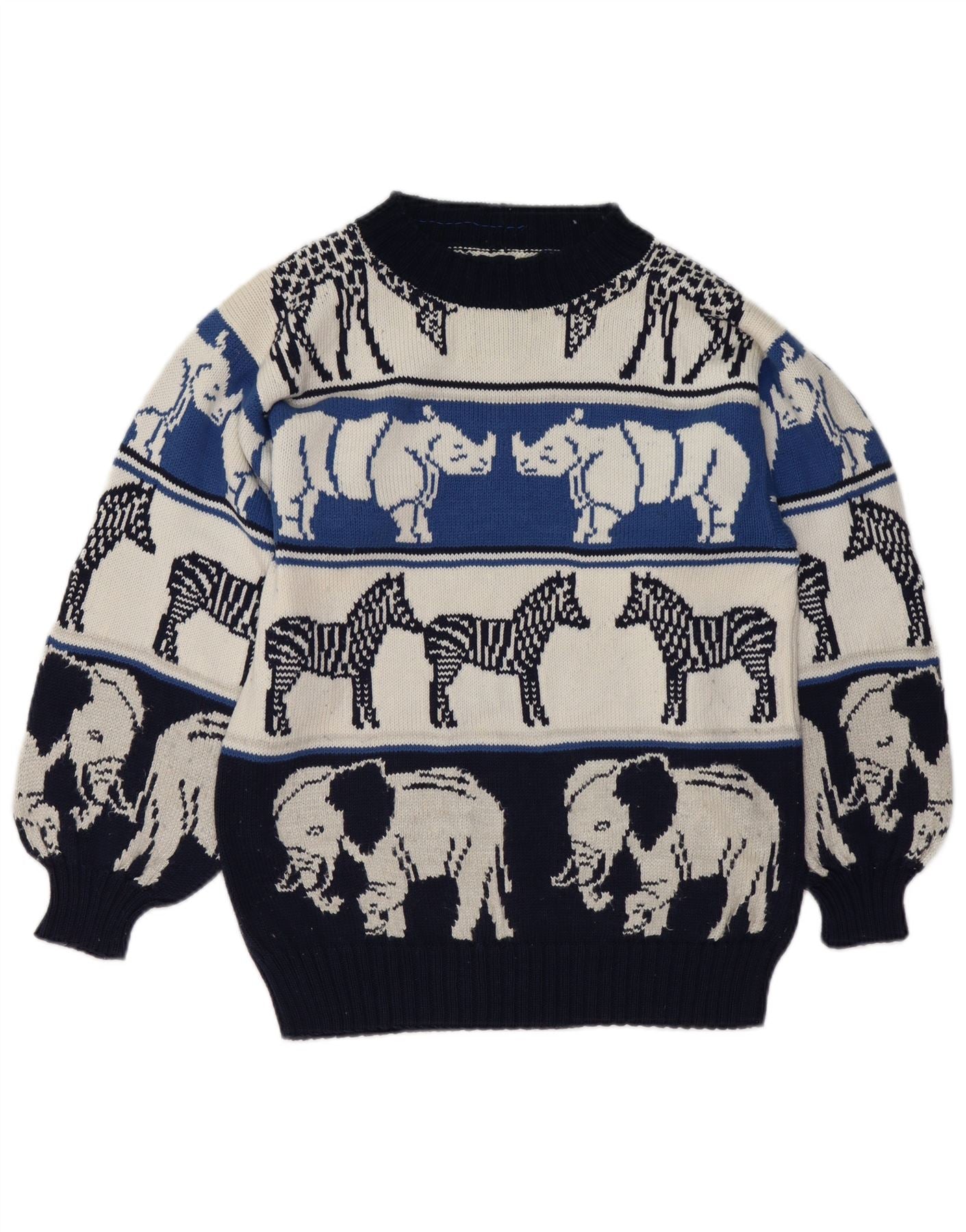 ВИНТАЖНЫЙ женский джемпер с круглым вырезом, Великобритания, 18 XL, темно-синий с животным принтом