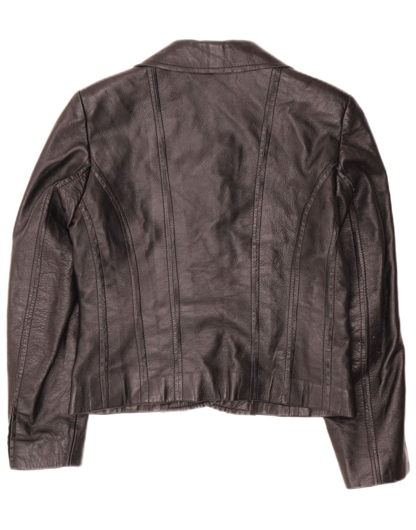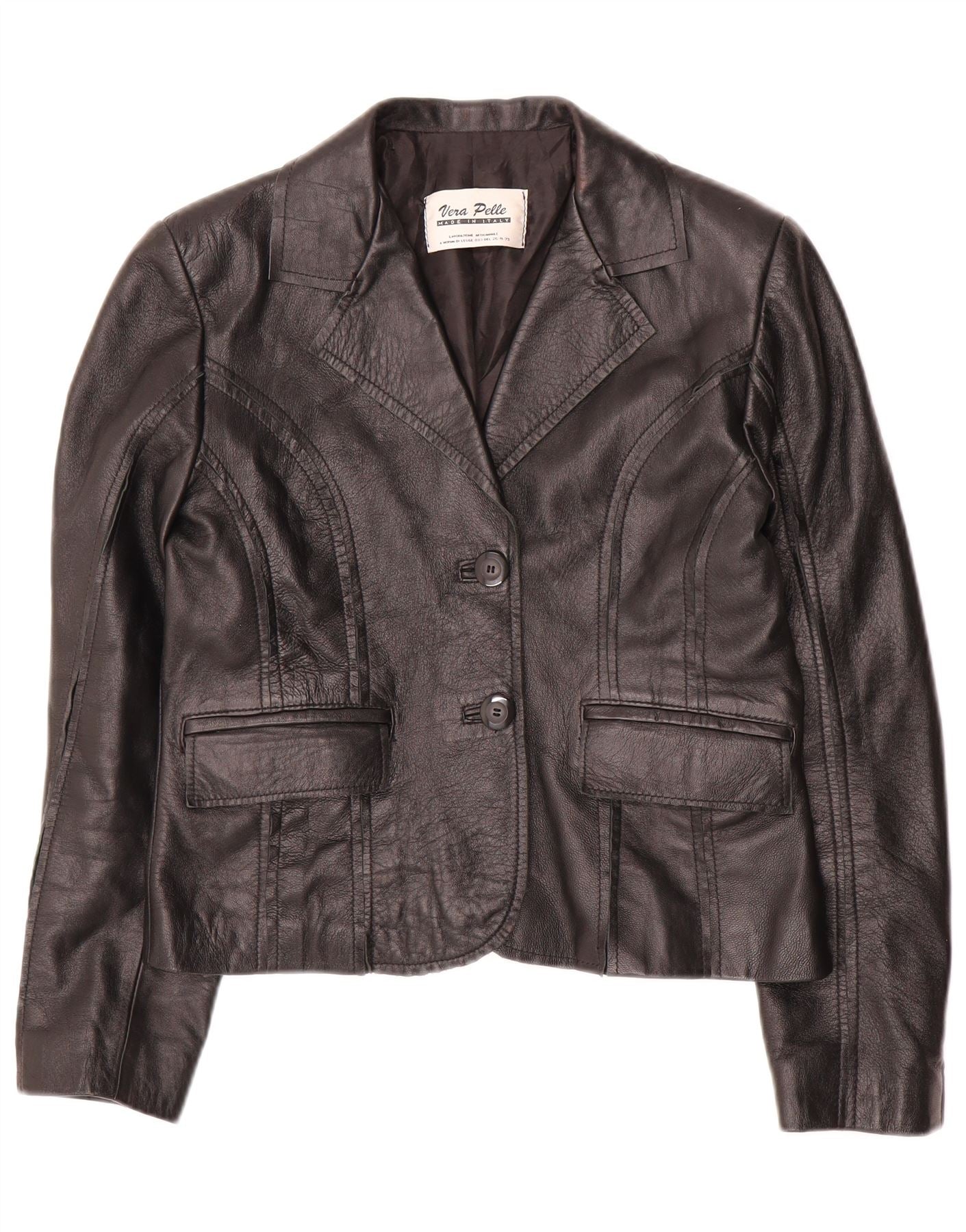 ВИНТАЖНЫЙ женский укороченный пиджак на 2 пуговицах IT 42, средний черный кожаный