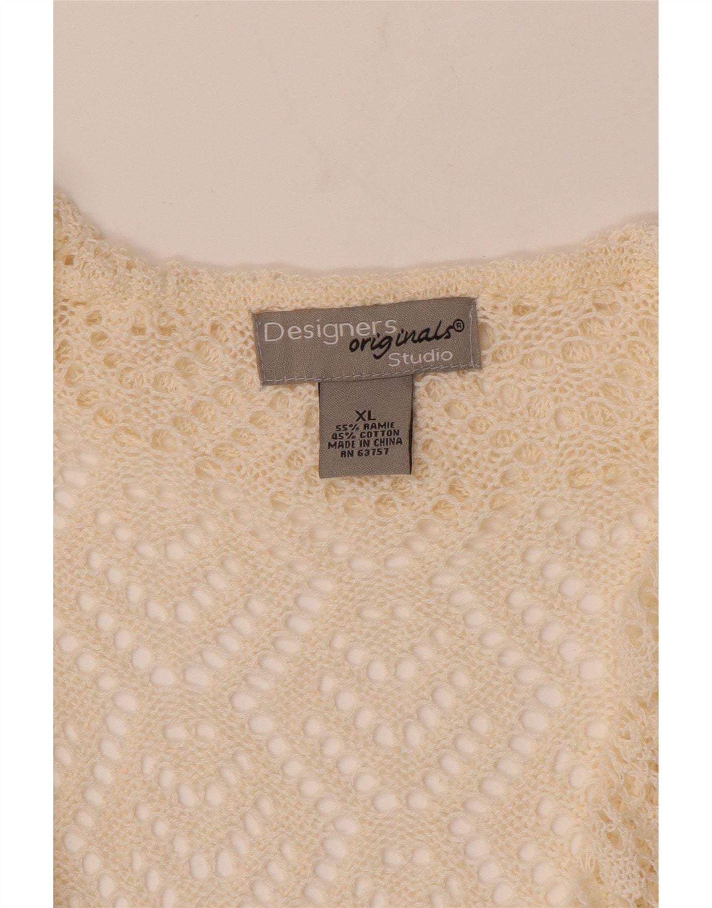 Home > Женский > Депоп Одежда > ВИНТАЖНЫЙ женский укороченный кардиган с рукавами 3/4, вязаный крючком, Великобритания, 18 XL, Off White