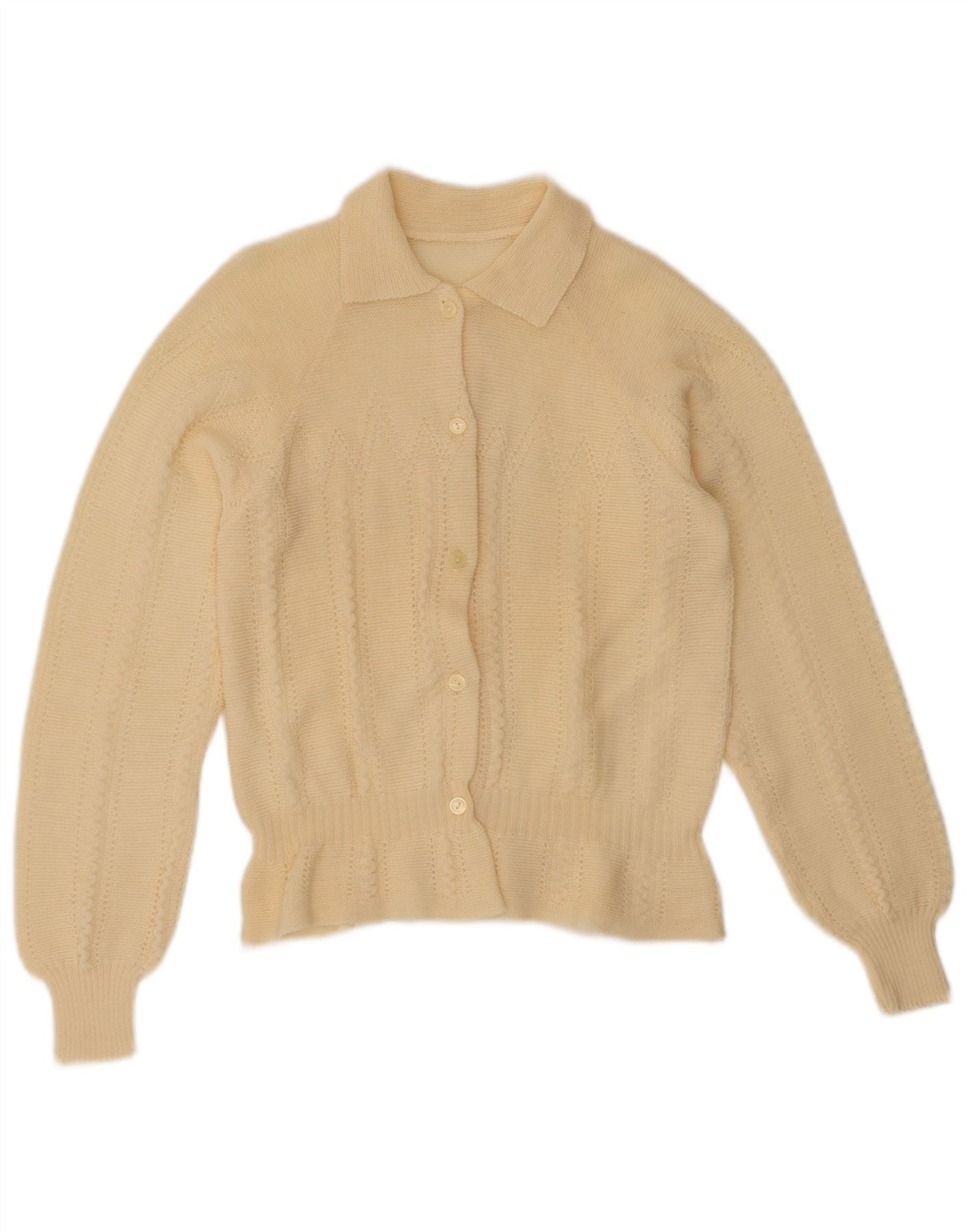 VINTAGE Женский укороченный кардиган-свитер IT 42 Средне-желтый из мериносовой шерсти