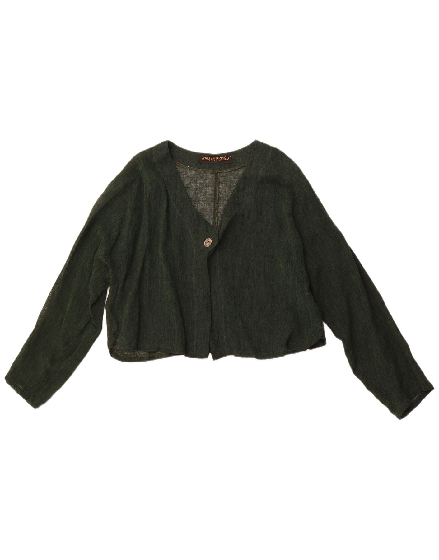 VINTAGE Женский укороченный кардиган UK 16, большой зеленый хлопок