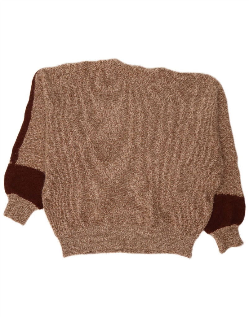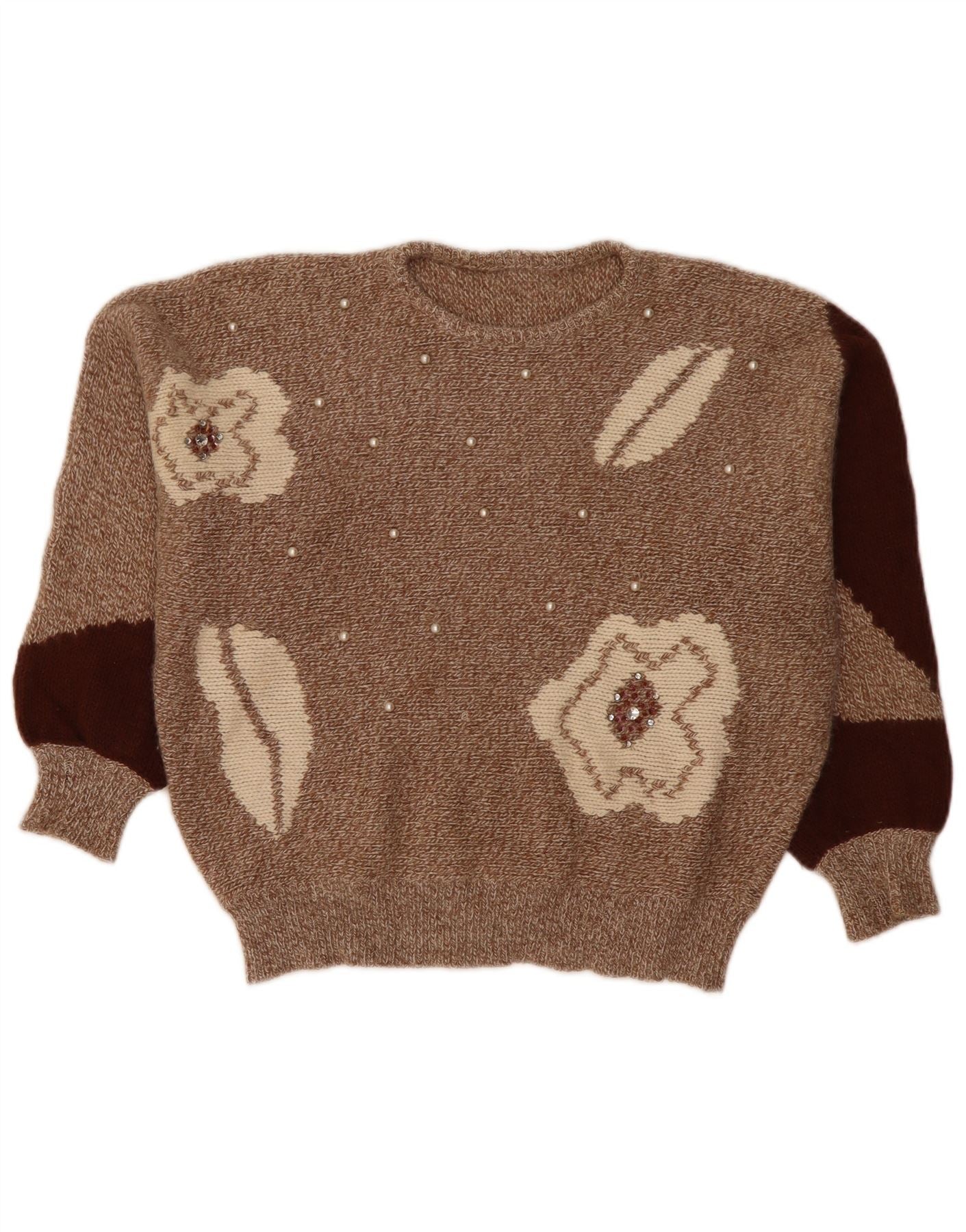 ВИНТАЖНЫЙ женский укороченный джемпер с круглым вырезом, Великобритания 14, средний коричневый в крапинку