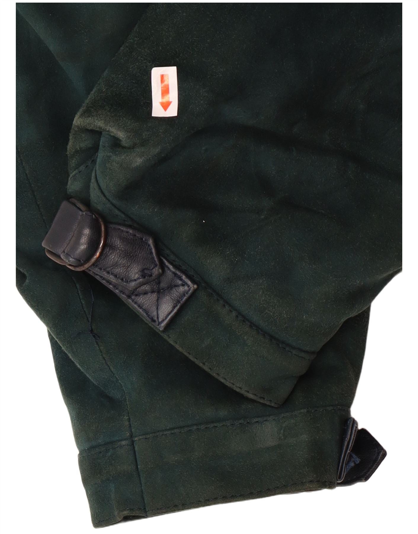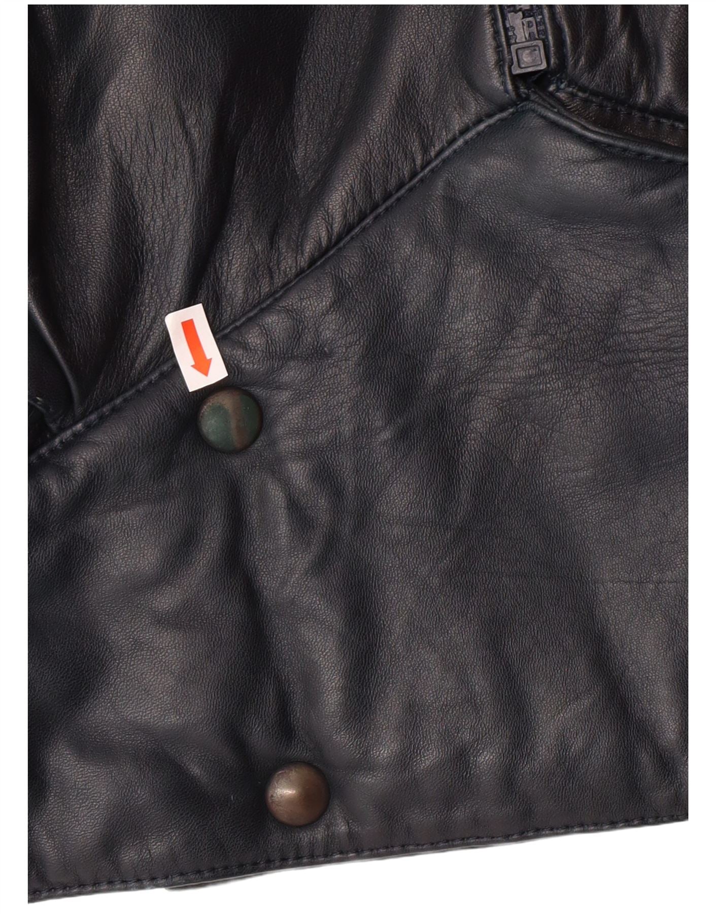 ВИНТАЖНАЯ женская укороченная кожаная куртка UK 6 XS Темно-синяя