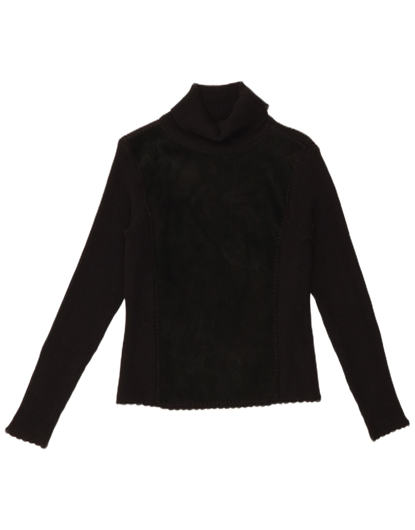 ВИНТАЖНЫЙ женский укороченный джемпер с воротником-стойкой, Великобритания, 8, маленький черный