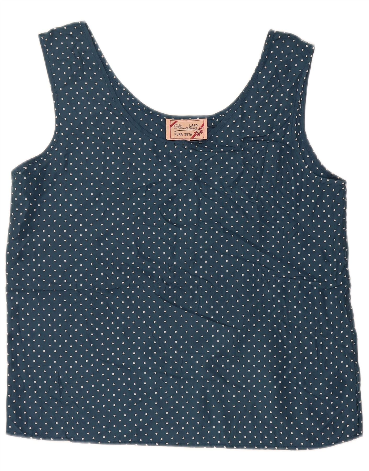 ВИНТАЖНАЯ женская укороченная блузка без рукавов, Великобритания 14, большой темно-синий в пятнистый цвет