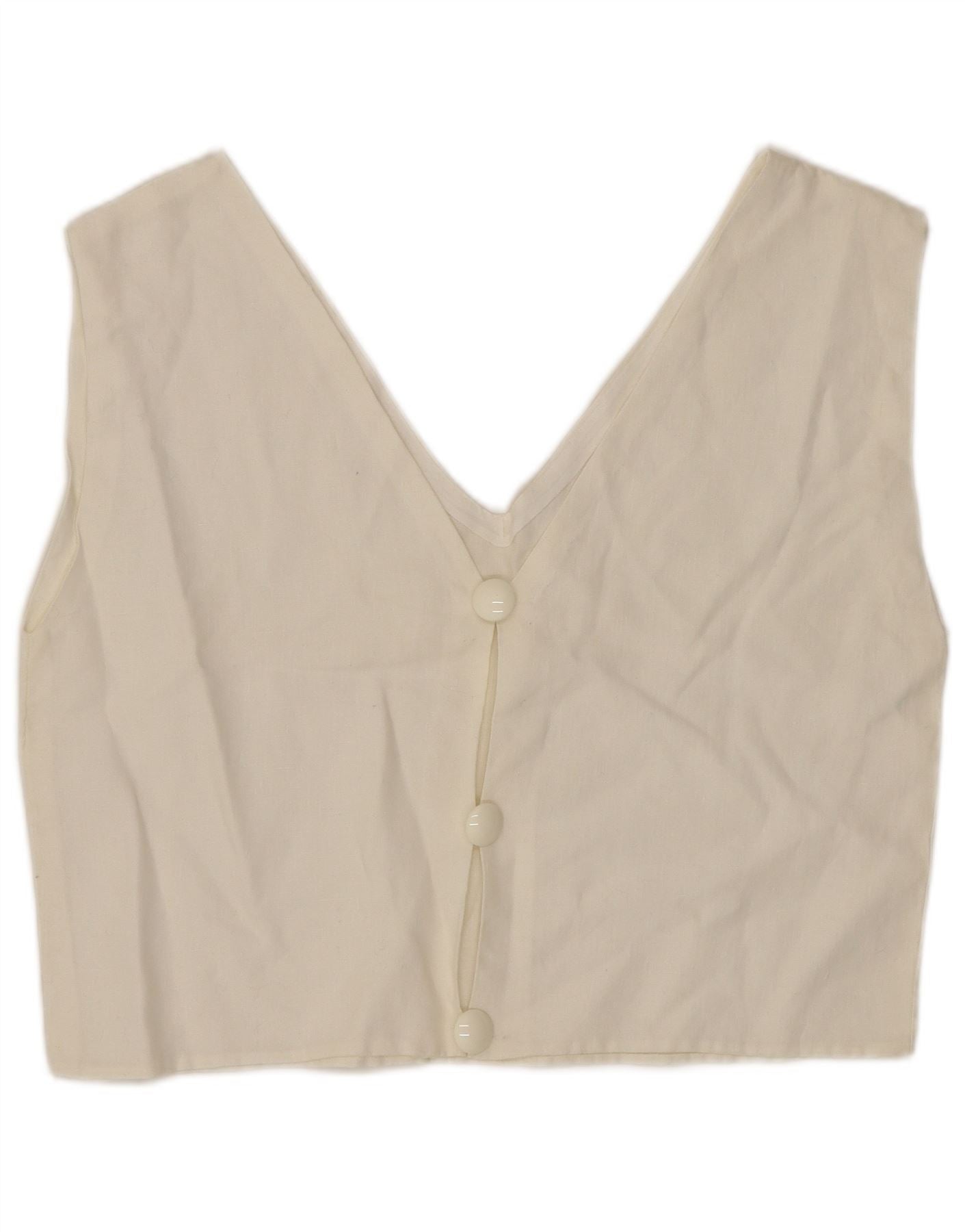 VINTAGE Женская укороченная блузка-рубашка без рукавов UK 12 Средний белый