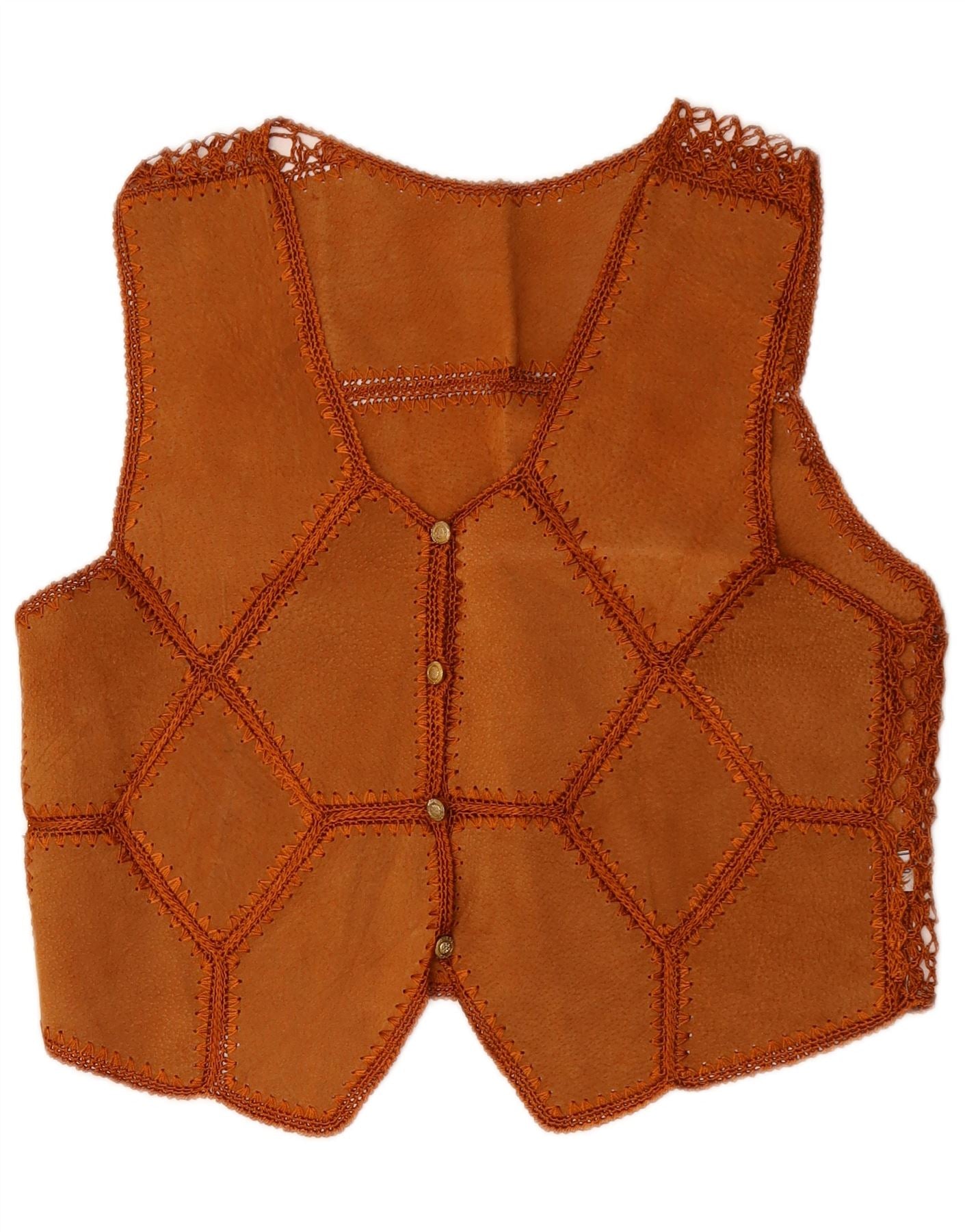 ВИНТАЖНЫЙ женский укороченный замшевый жилет UK 14, средний коричневый цвет в стиле пэчворк