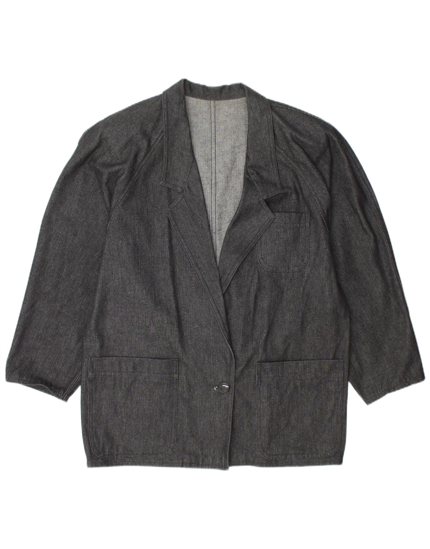 ВИНТАЖНЫЙ женский джинсовый пиджак на 1 пуговице, Великобритания 14, большой серый цвет