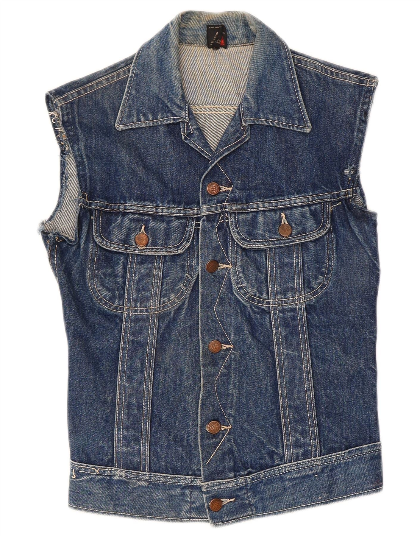 Винтажный женский джинсовый жилет UK 8, маленький синий хлопок