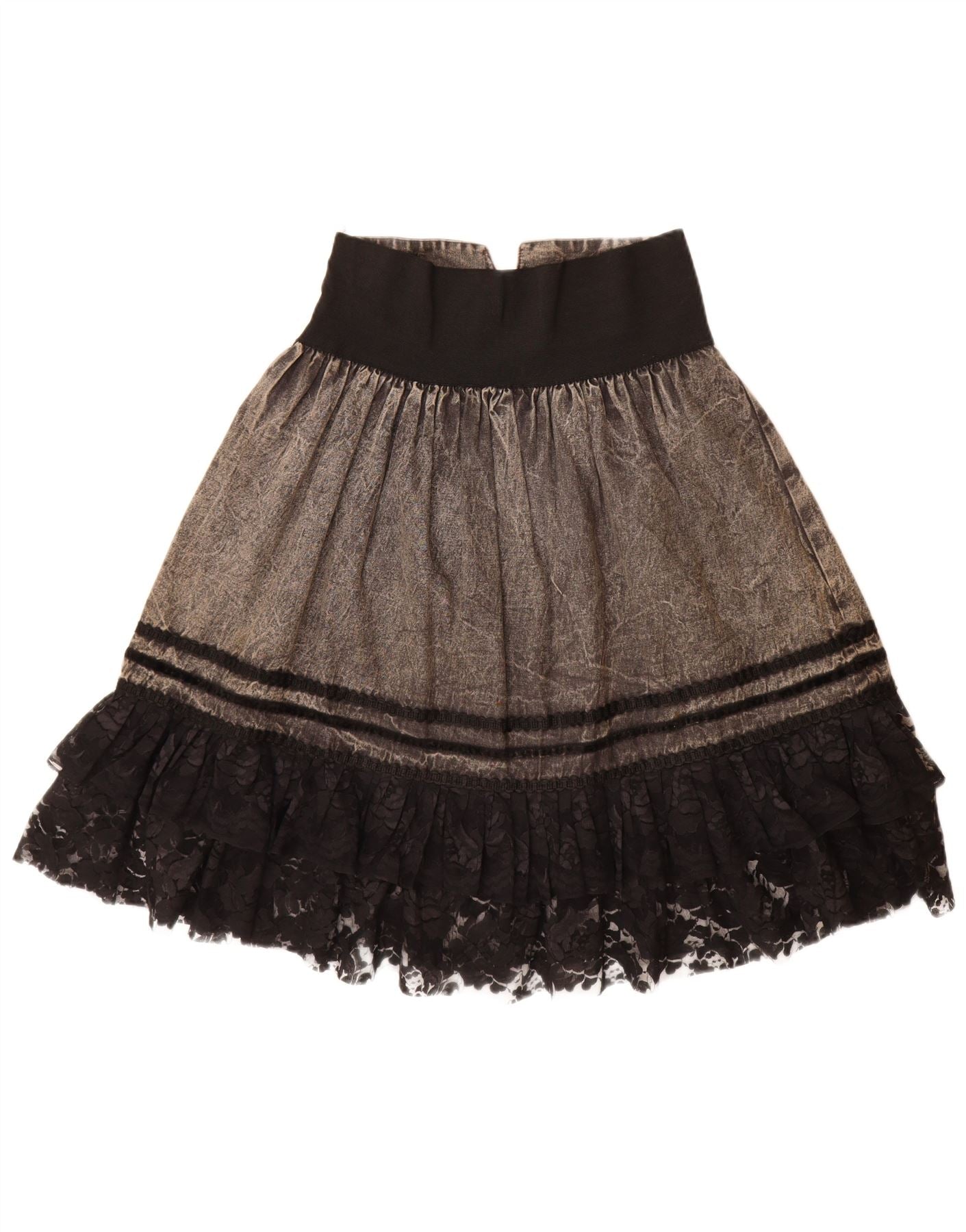 VINTAGE Womens Leather Skirt IT 44 Medium W28 Grey Leather