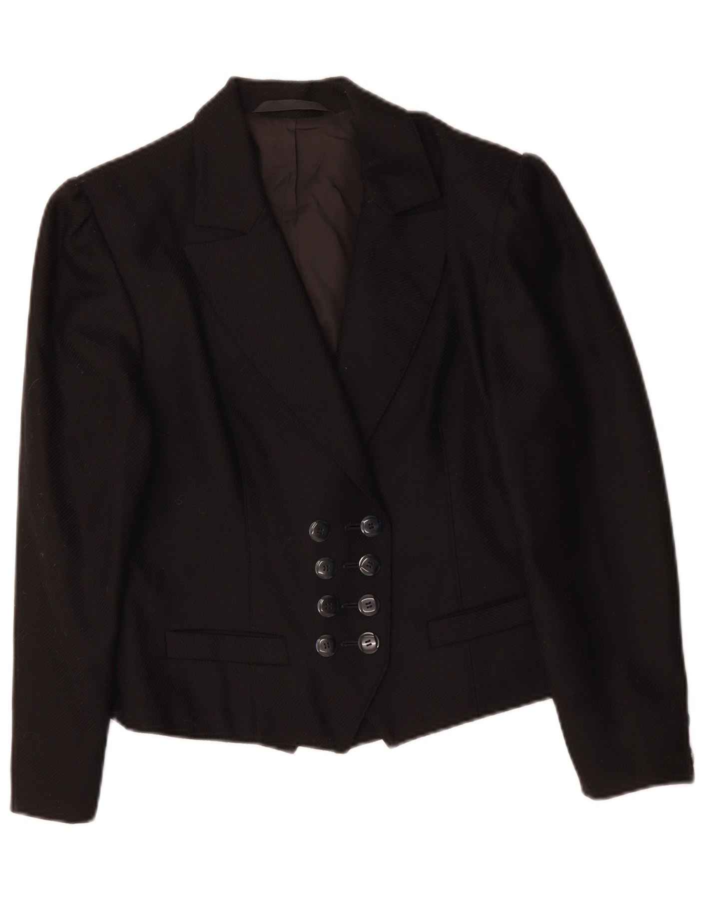 ВИНТАЖНЫЙ женский двубортный пиджак, Великобритания 14, средний черный