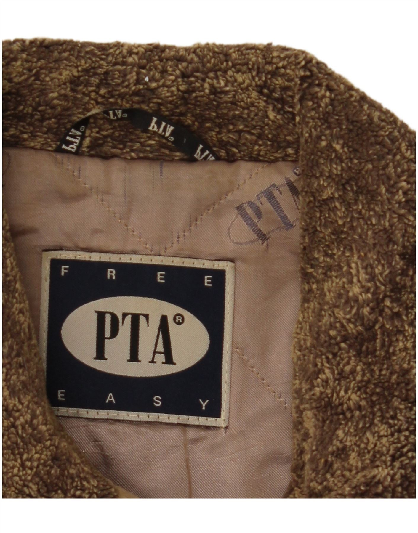 ВИНТАЖНОЕ женское двубортное кожаное пальто UK 6 XS Коричневое с цветными блоками