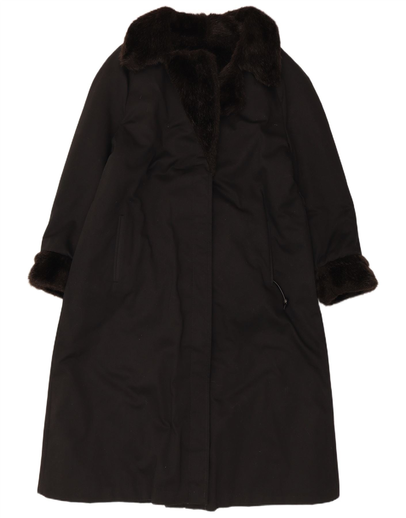 ВИНТАЖНОЕ женское пальто из искусственного меха UK 12, средний черный акрил