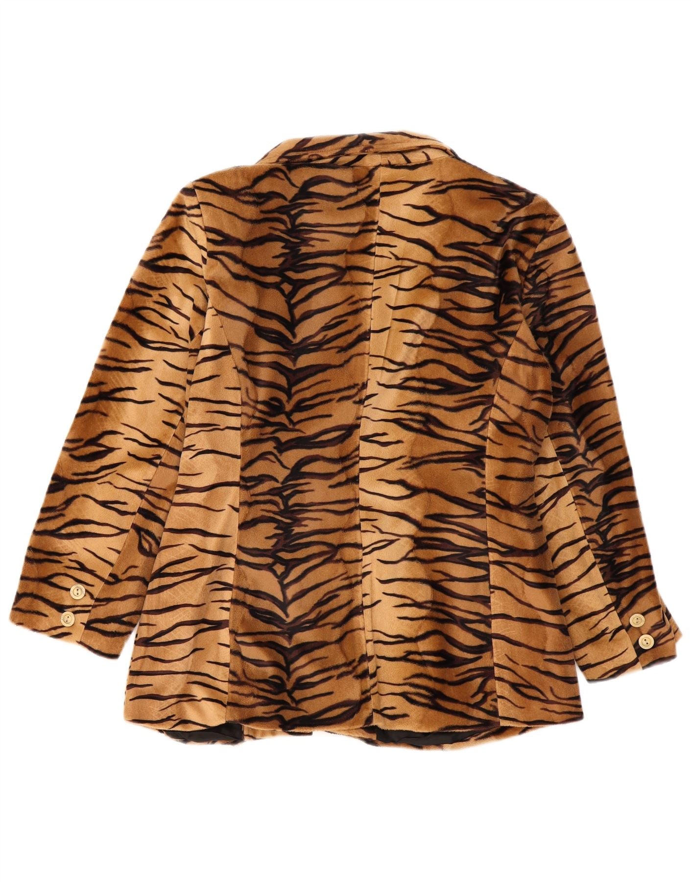 Home > Женский > Депоп Одежда > Винтажный женский флисовый пиджак UK 14, средний бежевый с животным принтом