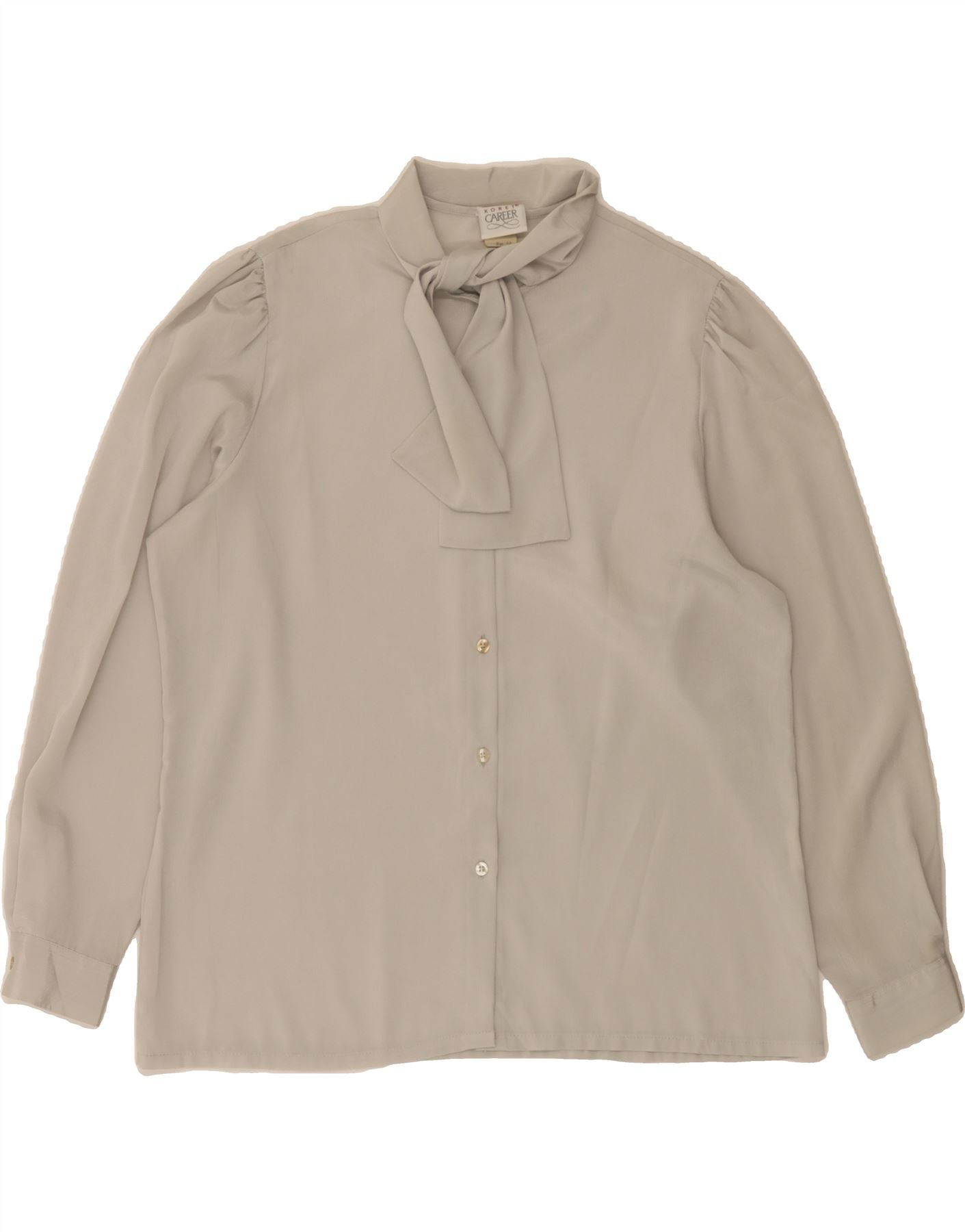 VINTAGE Womens Front Tie Shirt Blouse EU 38 Medium Grey Polyester