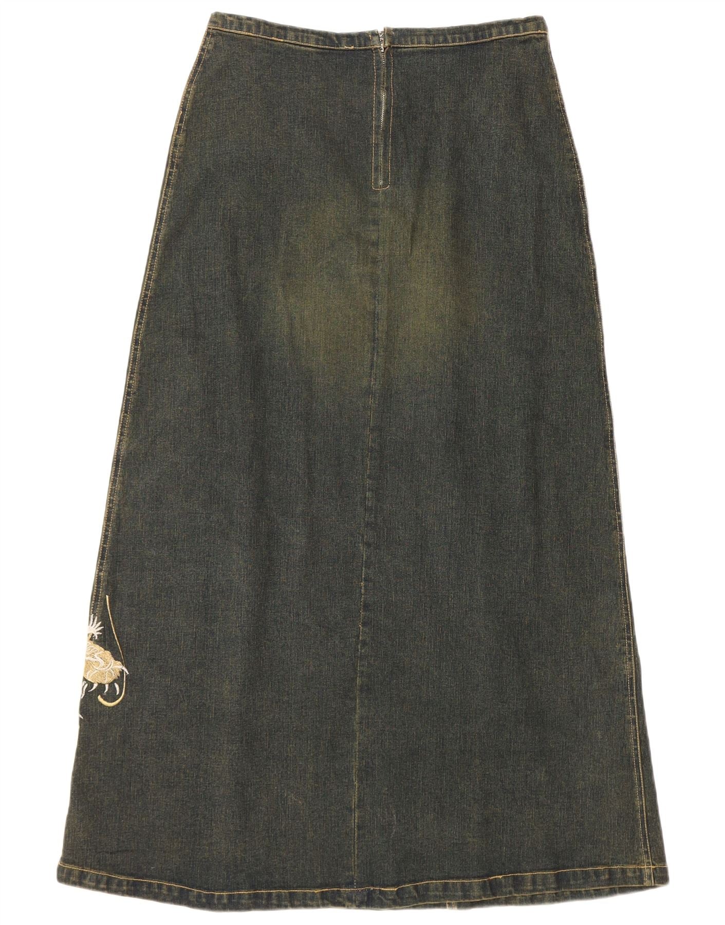 ВИНТАЖНАЯ женская джинсовая юбка с рисунком UK 12, средний W30, синяя, хлопок