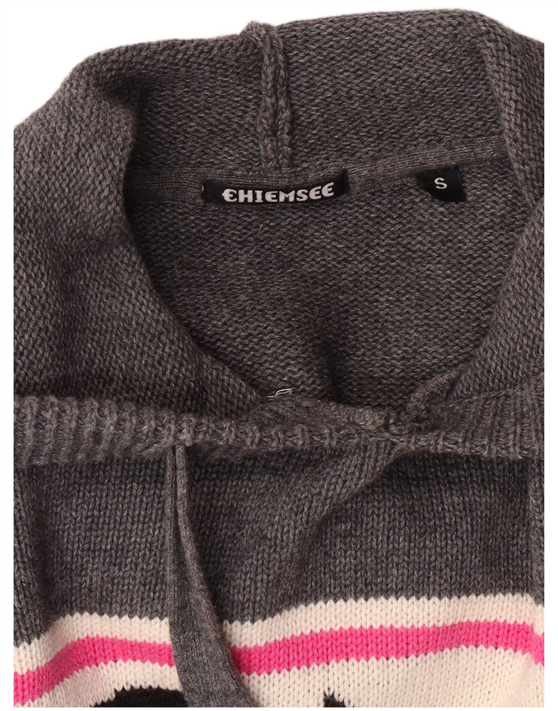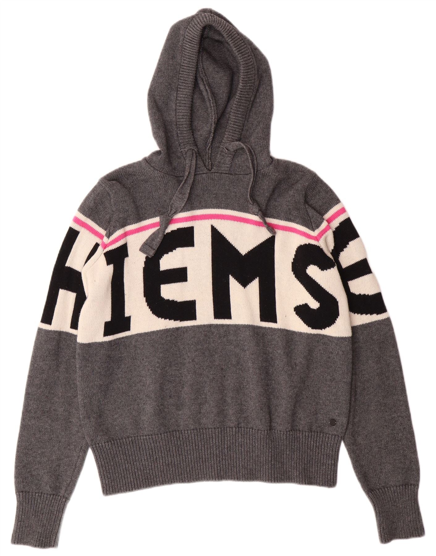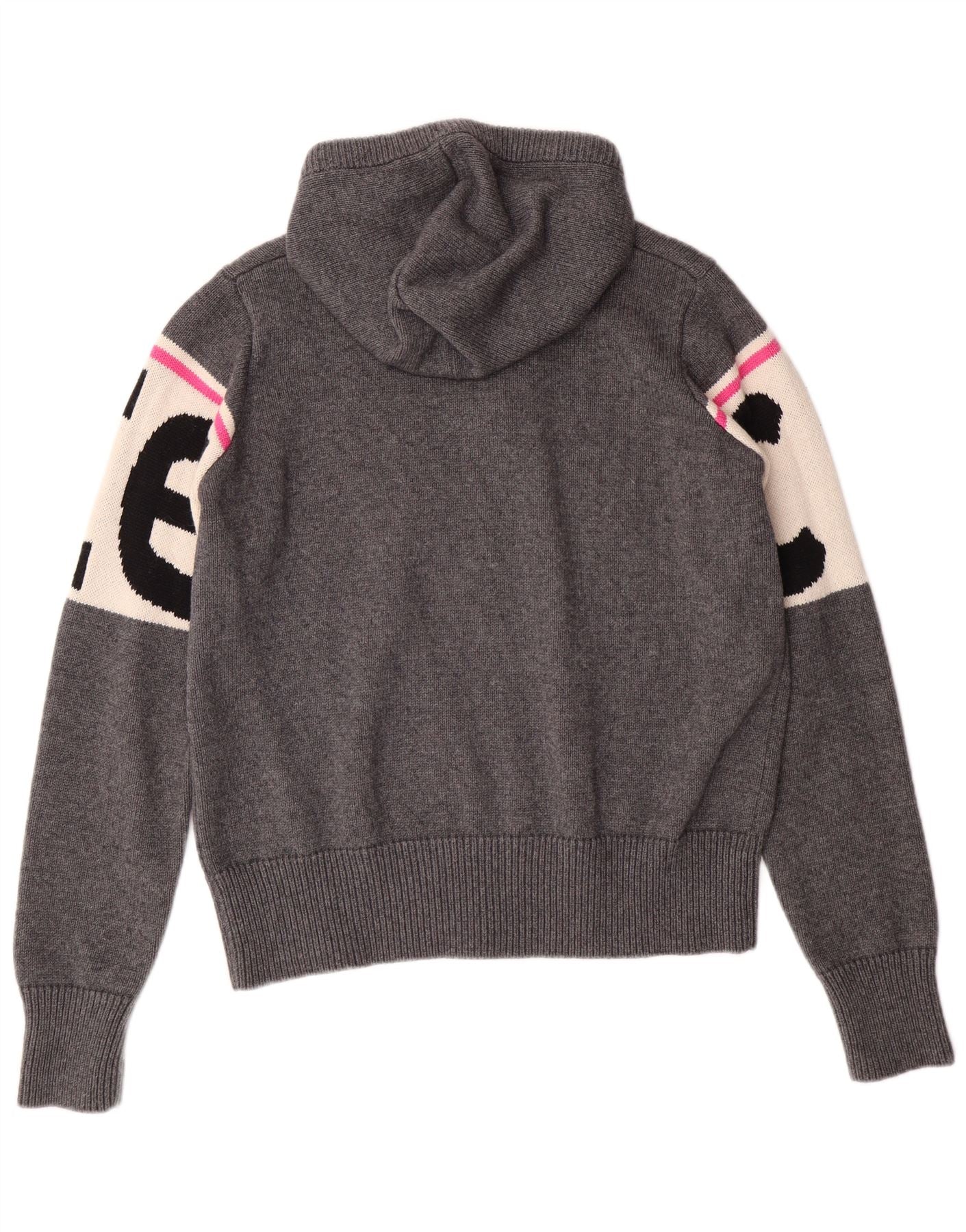 ВИНТАЖНЫЙ женский джемпер с капюшоном и графическим рисунком, размер UK 10, маленький серый цвет с цветными блоками