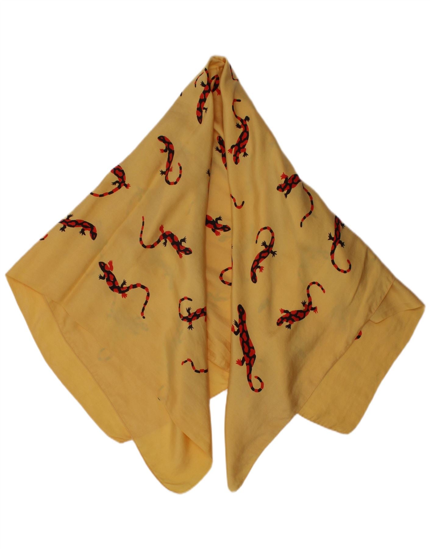 VINTAGE Womens Graphic Square Scarf One Size Yellow Animal Print Animals
