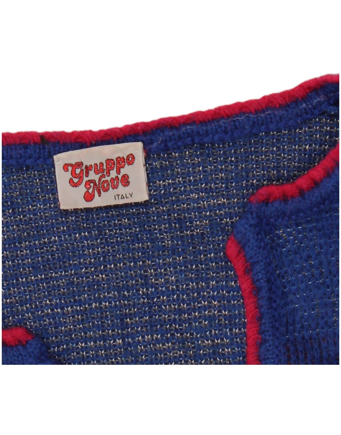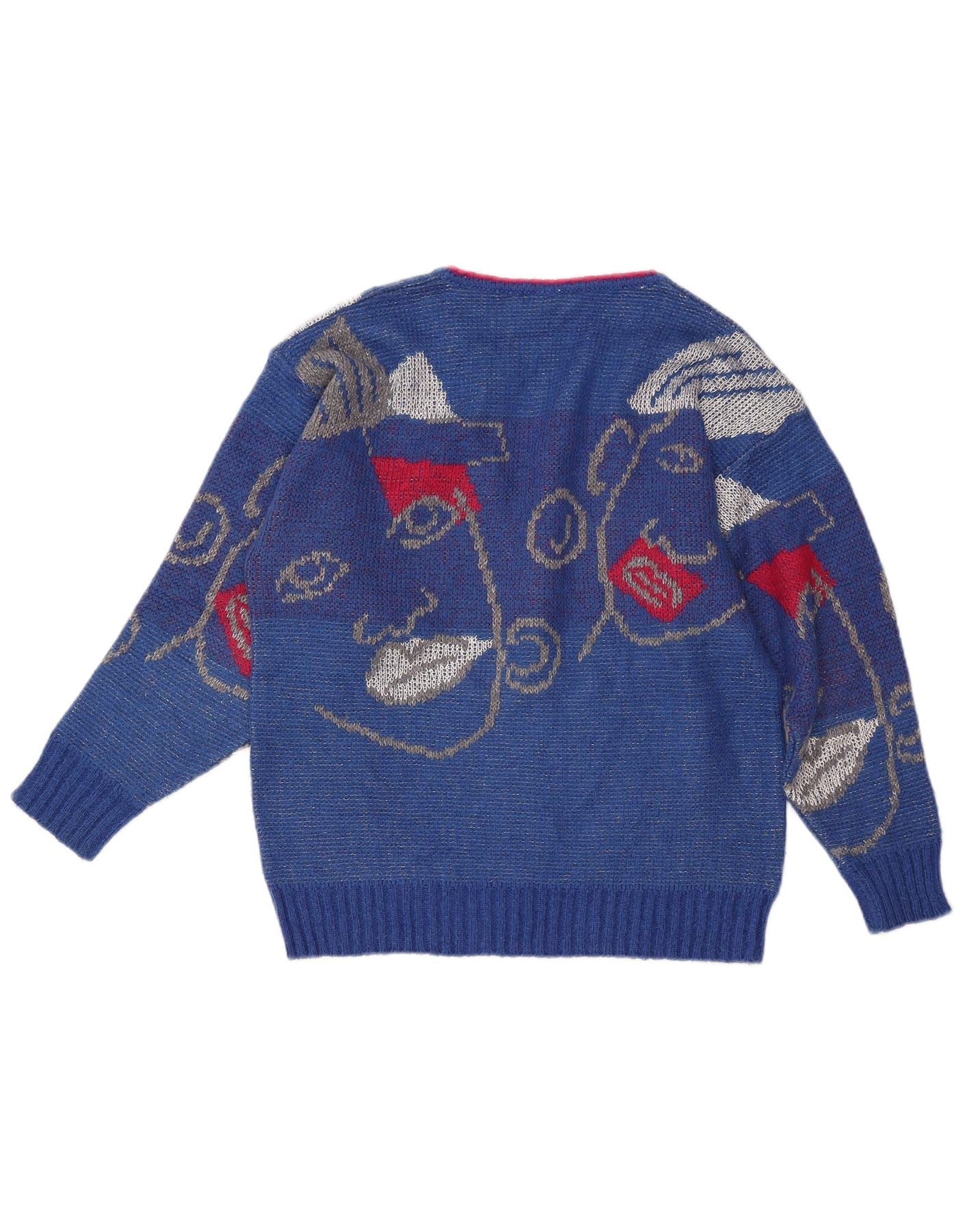 ВИНТАЖНЫЙ женский джемпер с V-образным вырезом и рисунком, Великобритания, 16, большой синий цвет