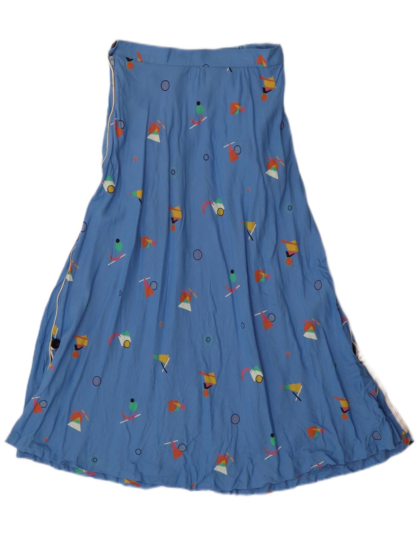 ВИНТАЖНАЯ женская юбка-трапеция с завышенной талией IT 42 Medium W24 Синяя с геометрическим рисунком