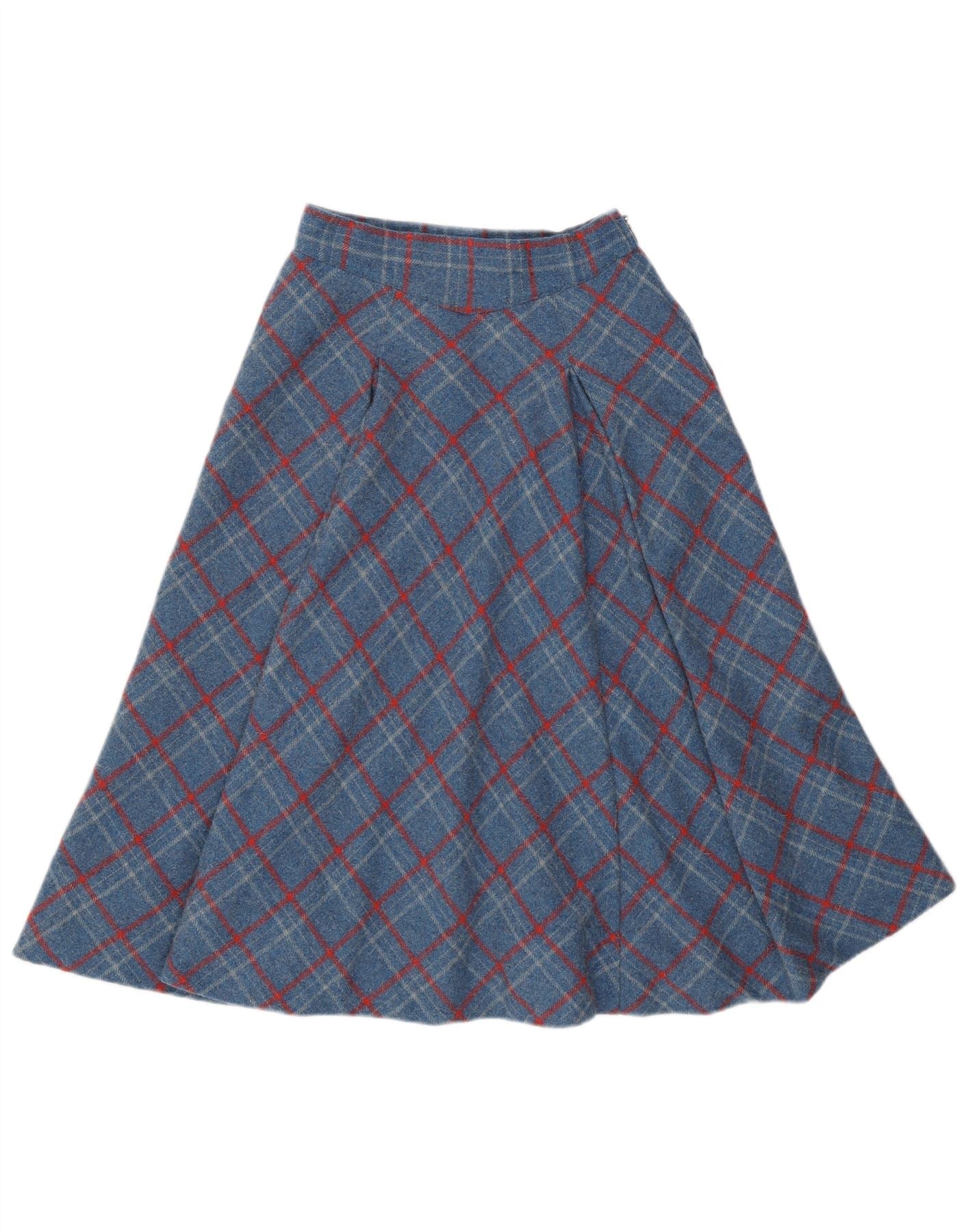 ВИНТАЖНАЯ женская юбка-трапеция с завышенной талией W24 XS, синяя клетка