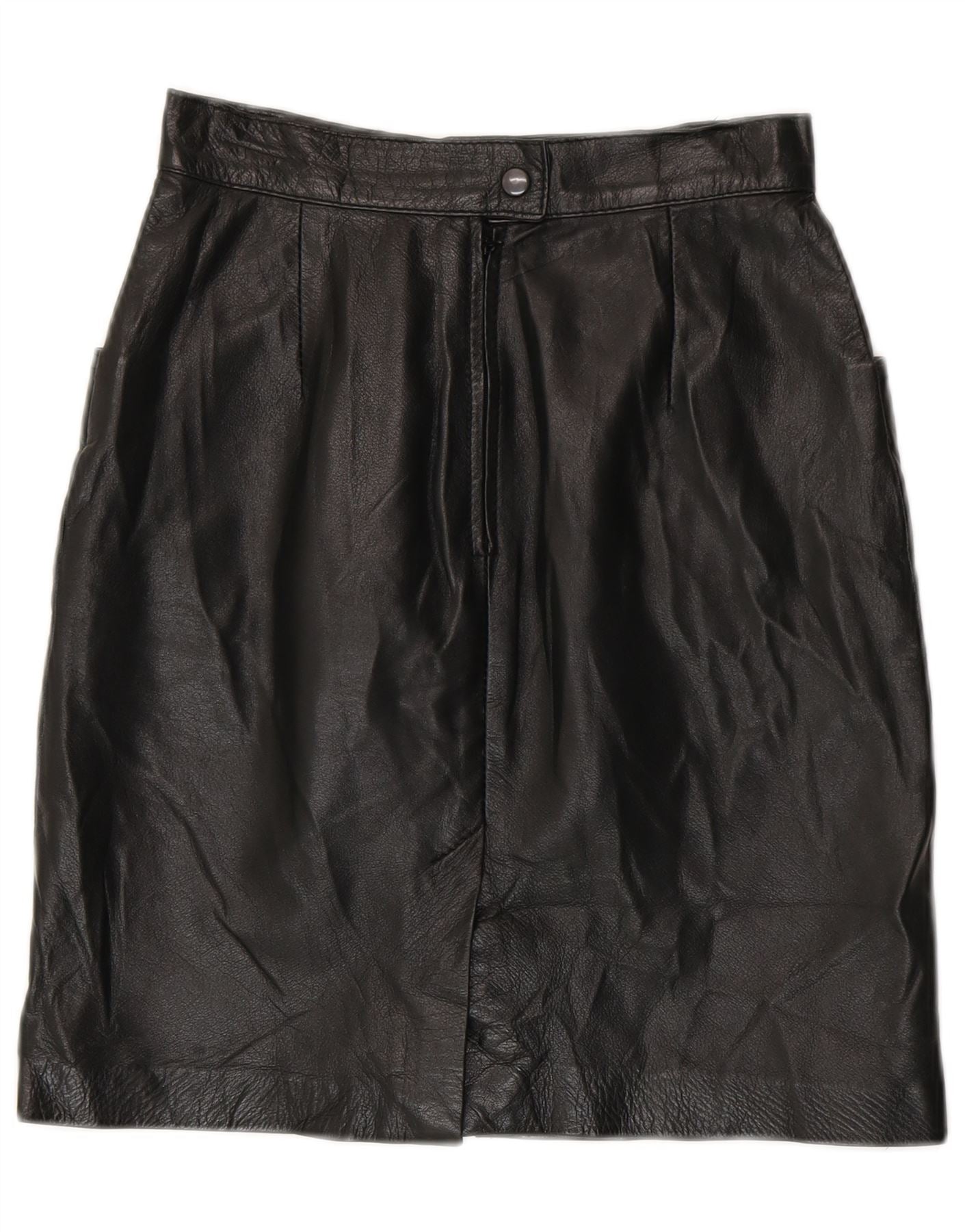 Винтажная женская кожаная юбка с высокой талией IT 42 Medium W24 Черная