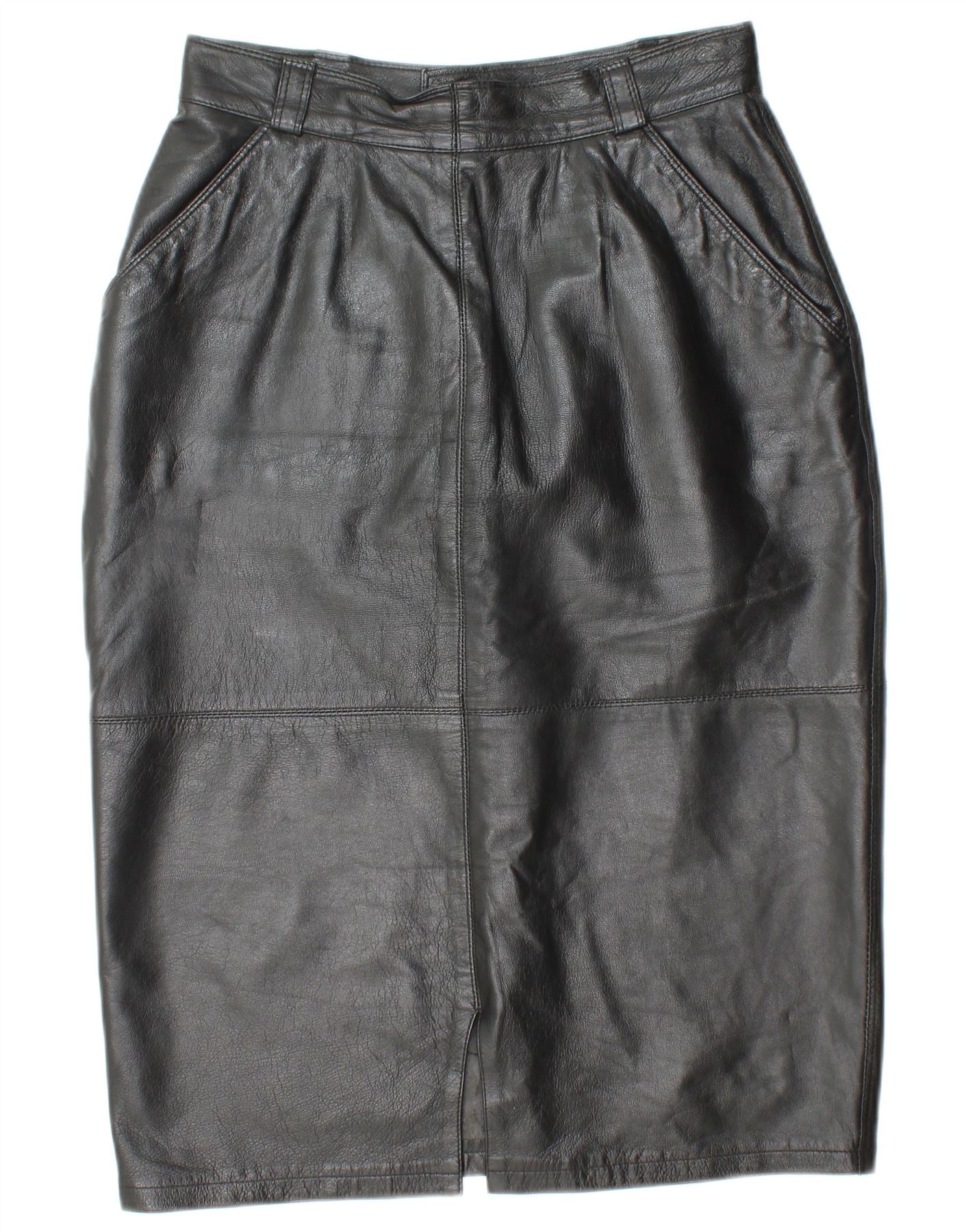 ВИНТАЖНАЯ Женская кожаная юбка с завышенной талией IT 44 Medium W26 Черная кожа