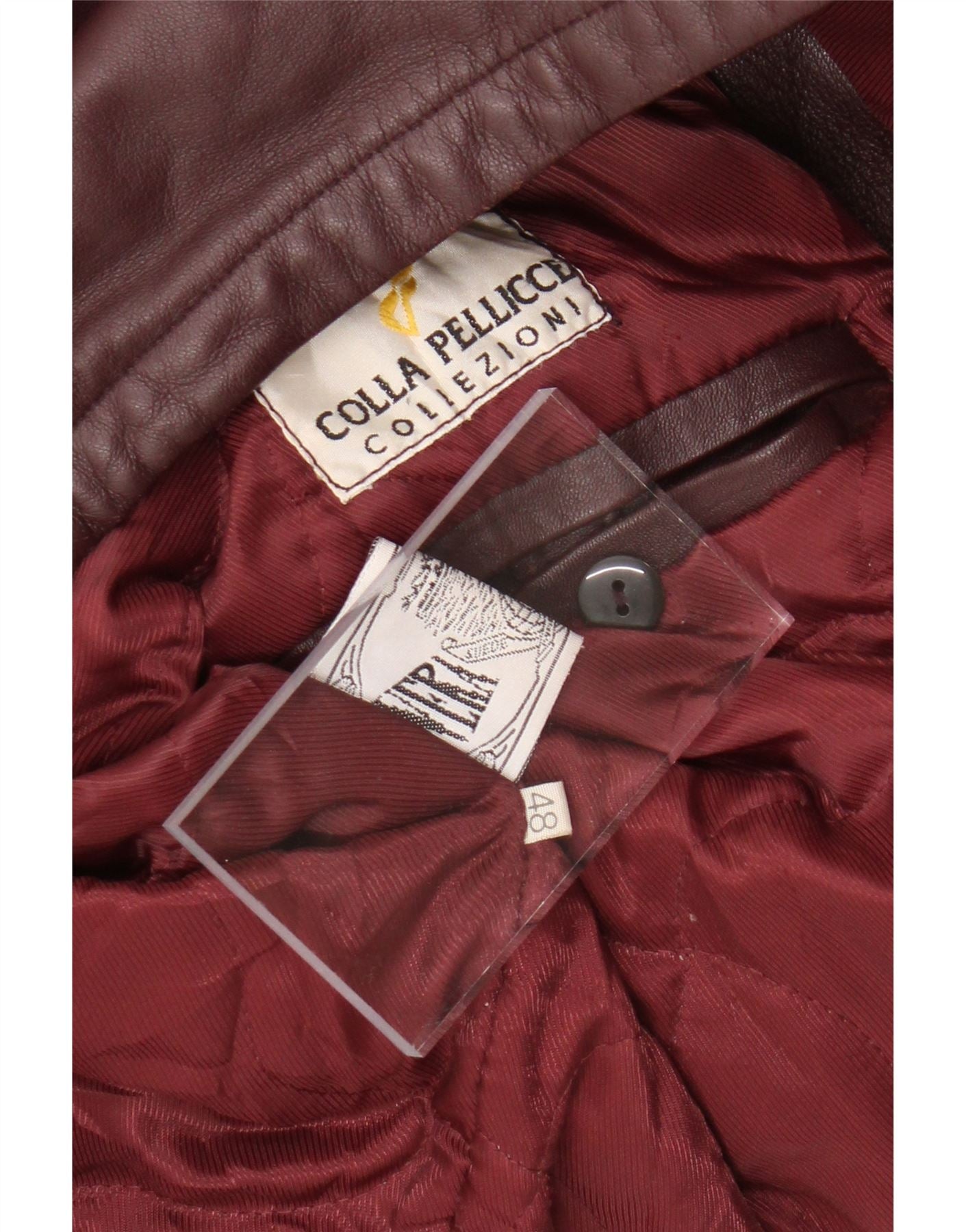 ВИНТАЖНАЯ женская кожаная куртка с капюшоном IT 48 XL Бордовая кожа