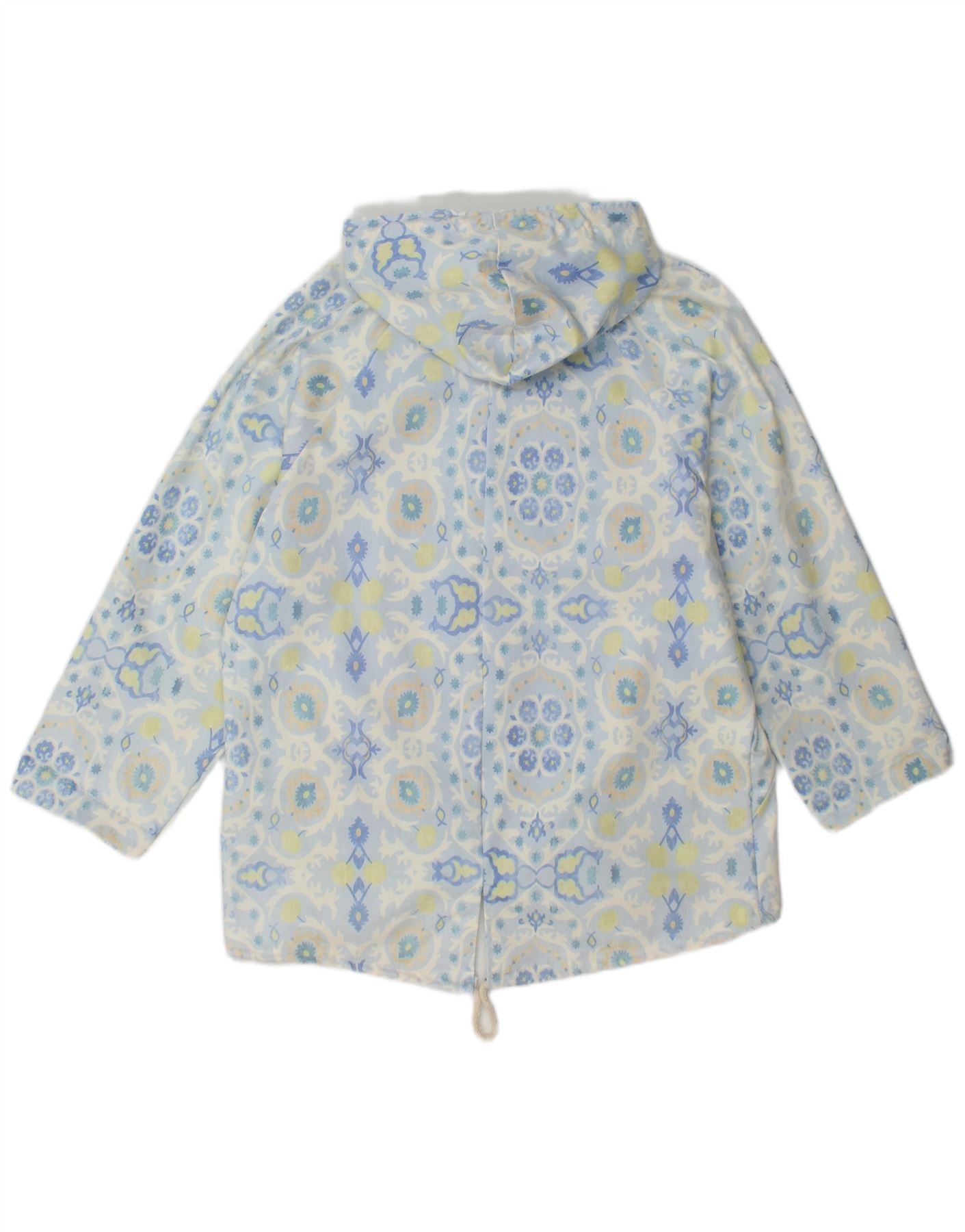 VINTAGE Womens Hooded Parka Jacket UK 16 Large Blue Floral Cotton