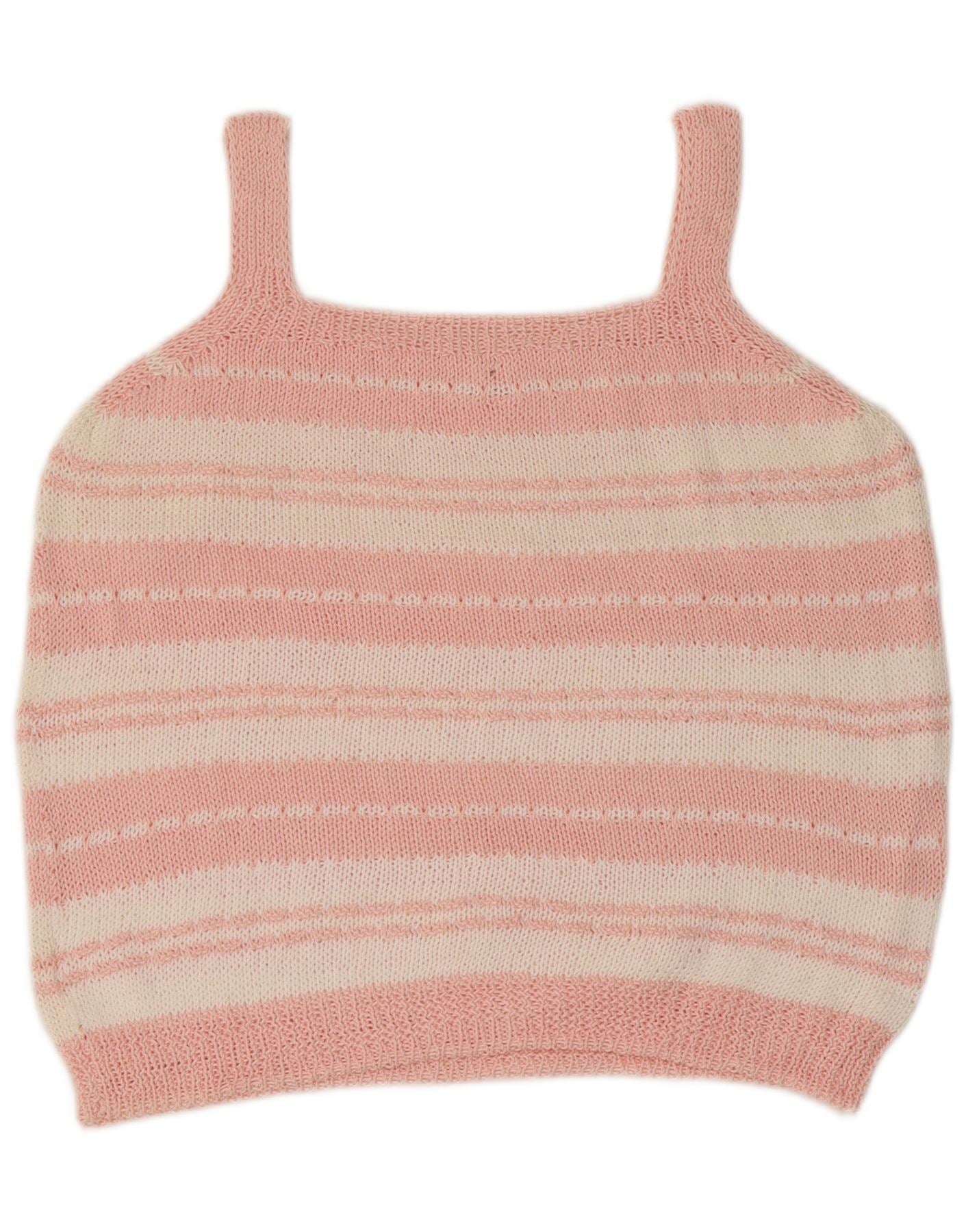ВИНТАЖНЫЙ женский вязаный топ на бретельках UK 14, большой розовый в полоску