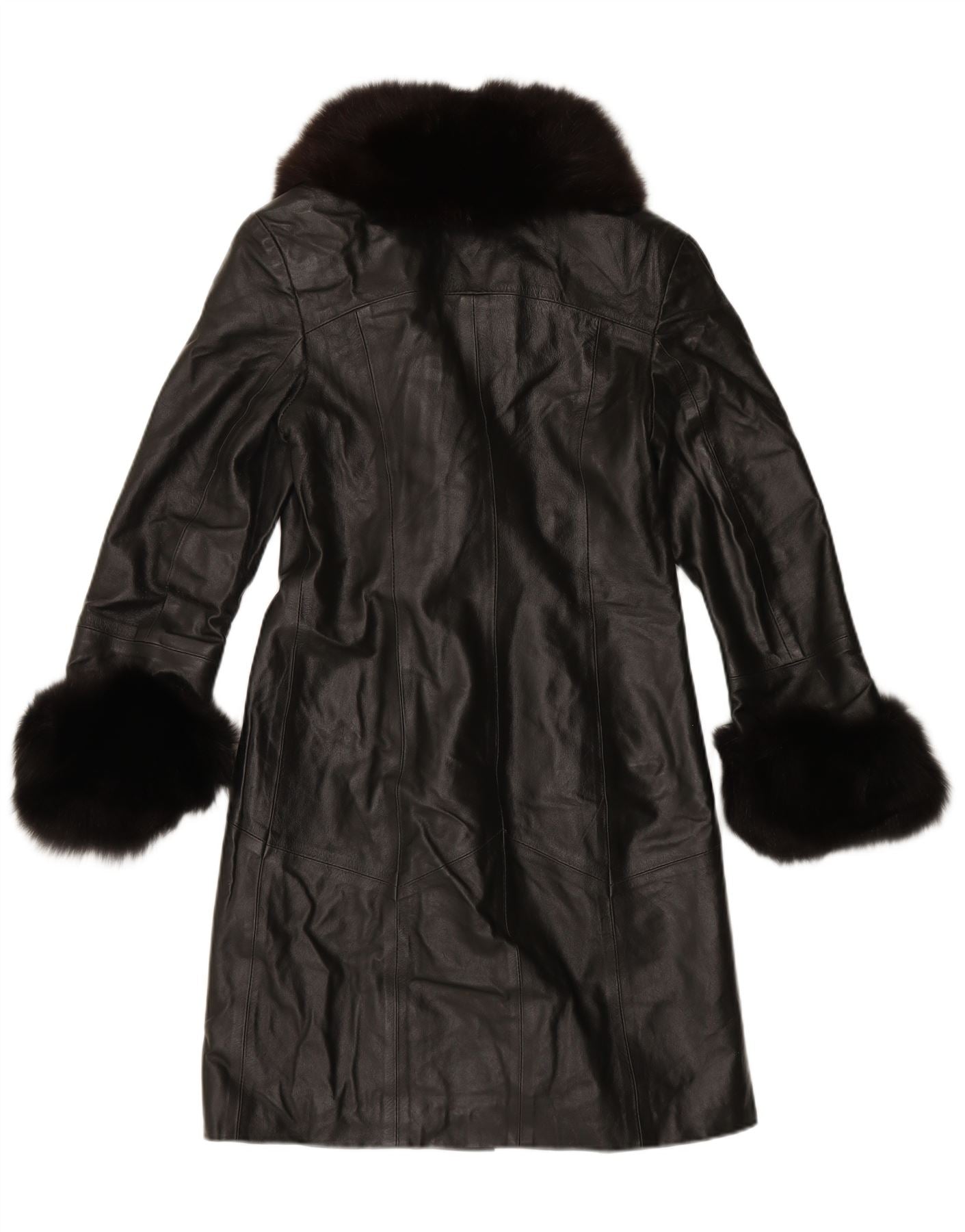 VINTAGE Женское кожаное пальто IT 46 Большое Черное Кожаное
