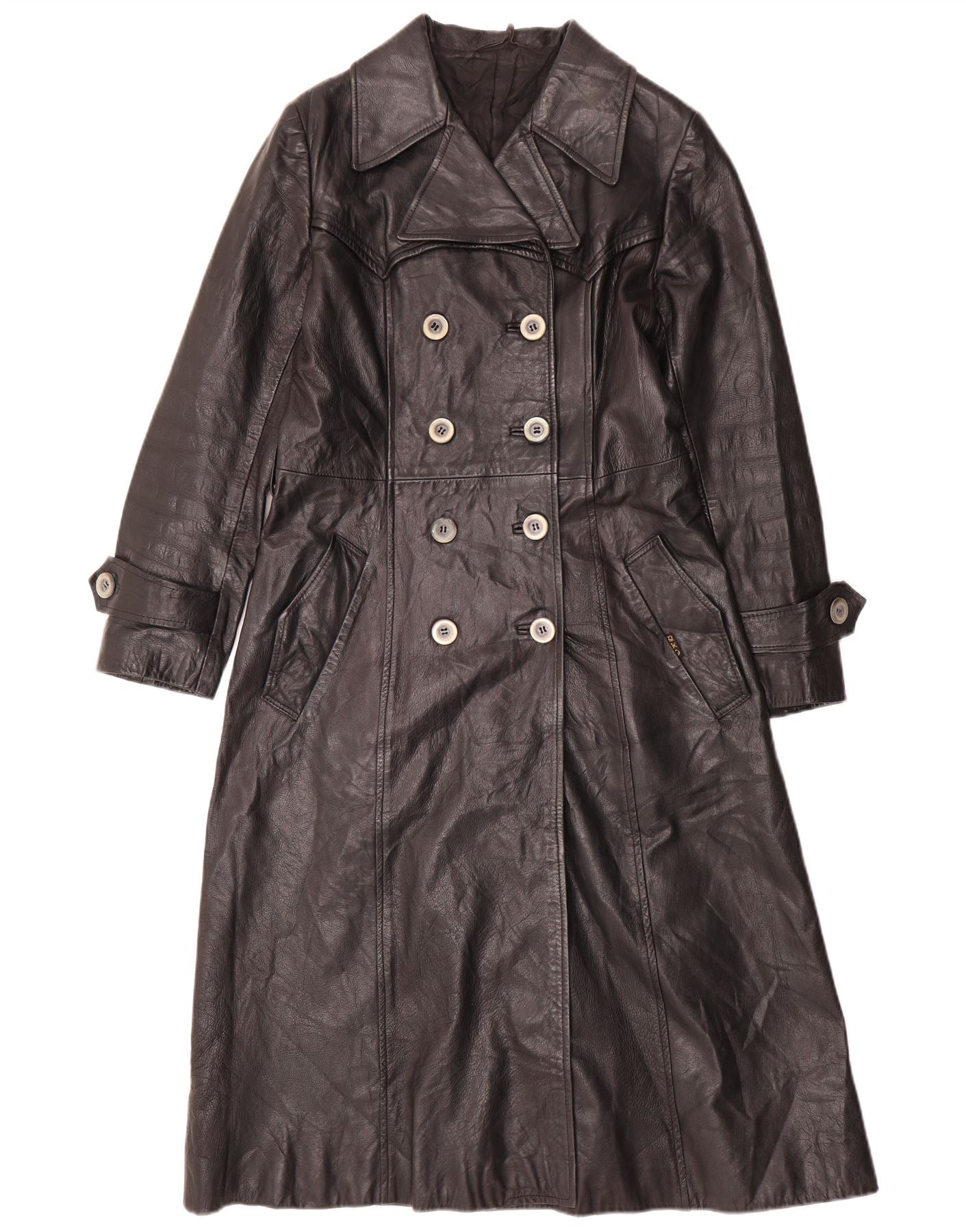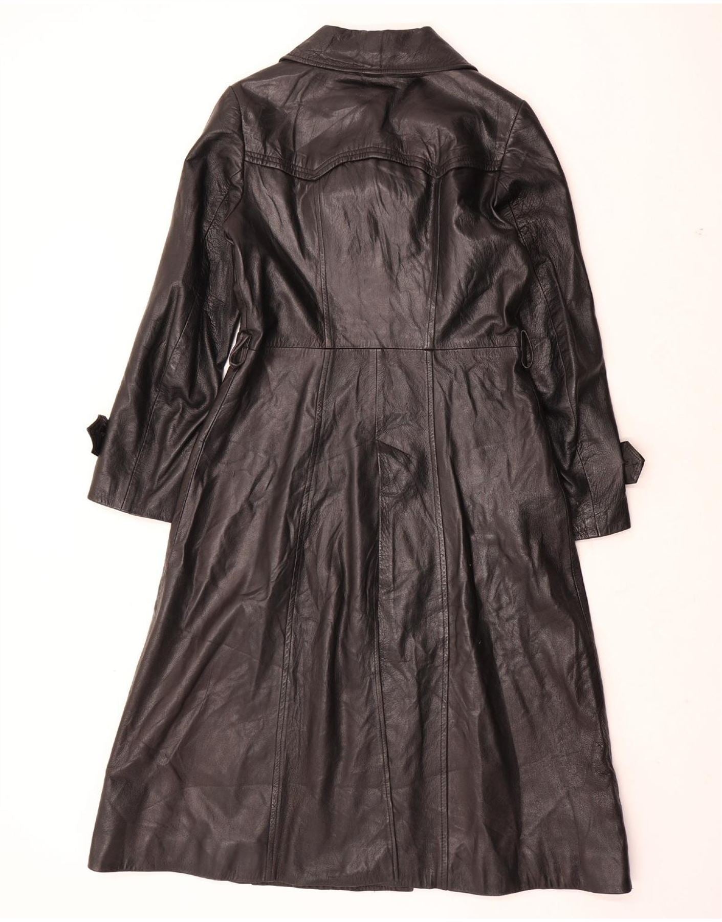 ВИНТАЖНОЕ Женское Кожаное Пальто UK 12 Среднее Черное Кожаное