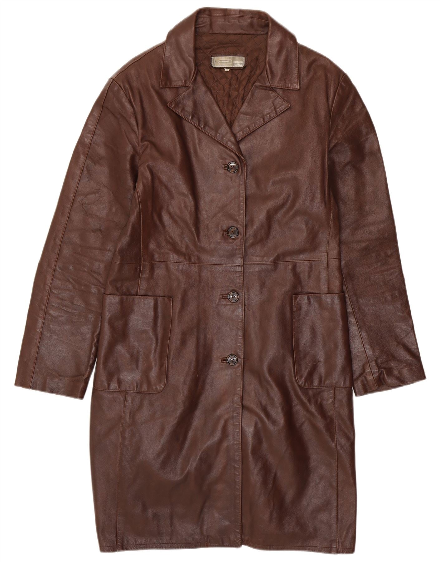 ВИНТАЖНОЕ женское кожаное пальто UK 18 XL Коричневое кожаное