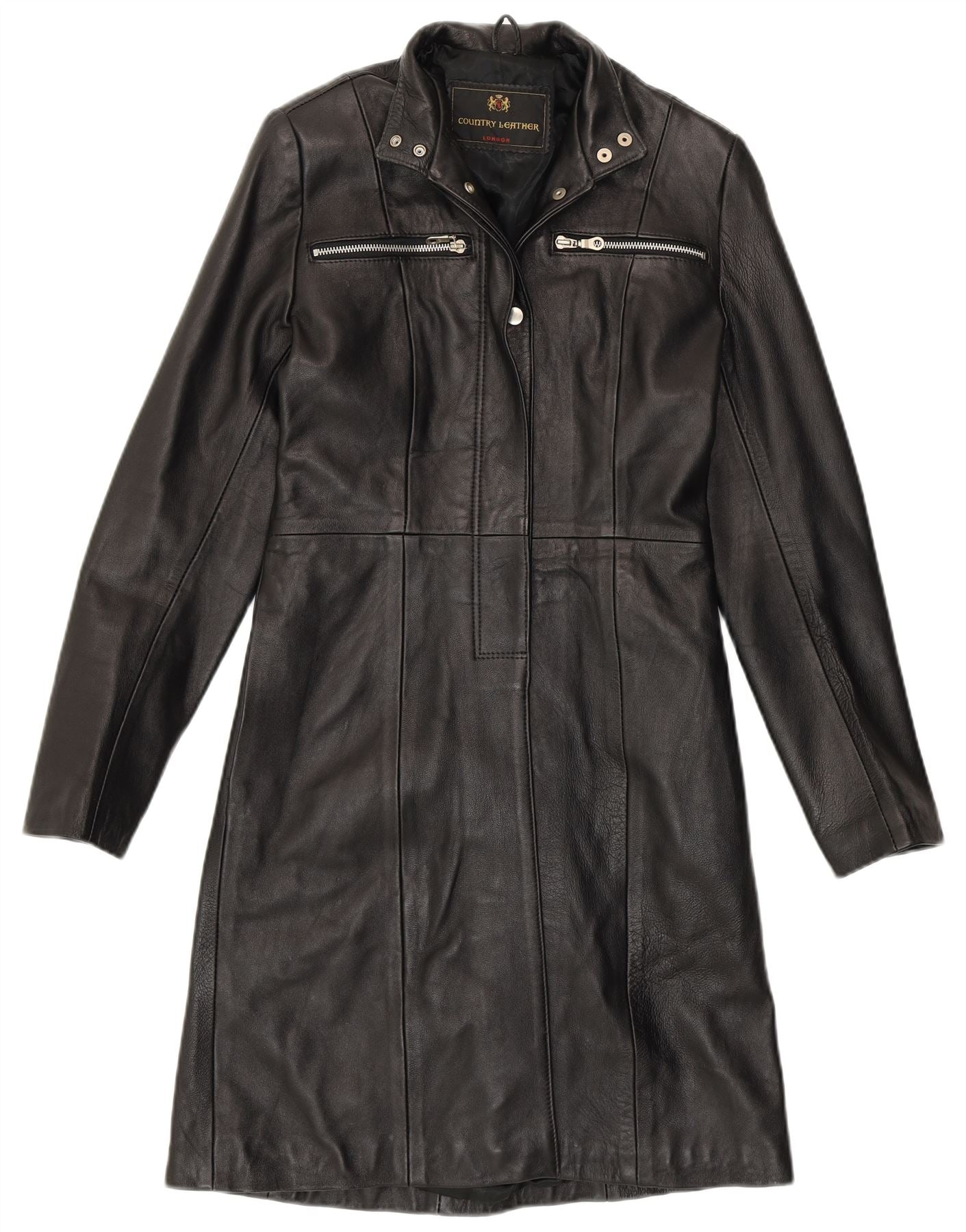 ВИНТАЖНОЕ женское кожаное пальто UK 8 маленькое черное кожаное
