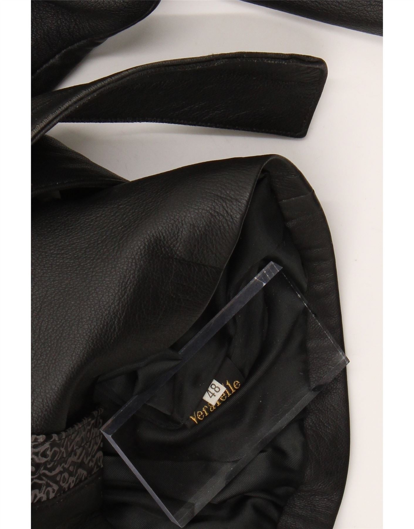 ВИНТАЖНАЯ Женская кожаная куртка IT 48 XL Черная кожа с геометрическим рисунком