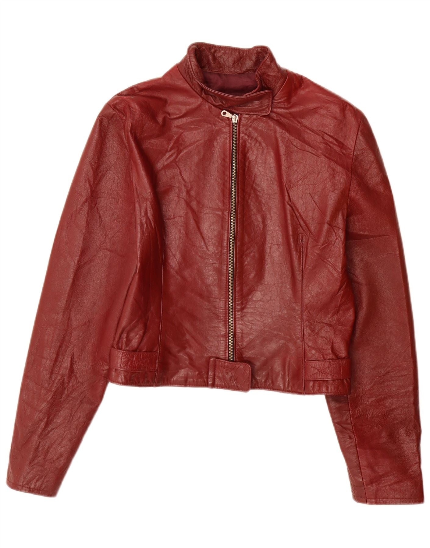 ВИНТАЖНАЯ Женская кожаная куртка UK 10 маленькая бордовая кожа
