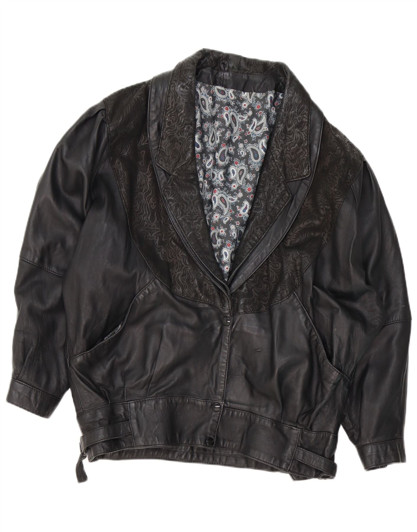 ВИНТАЖНАЯ женская кожаная куртка UK 18 XL, черная с пейсли
