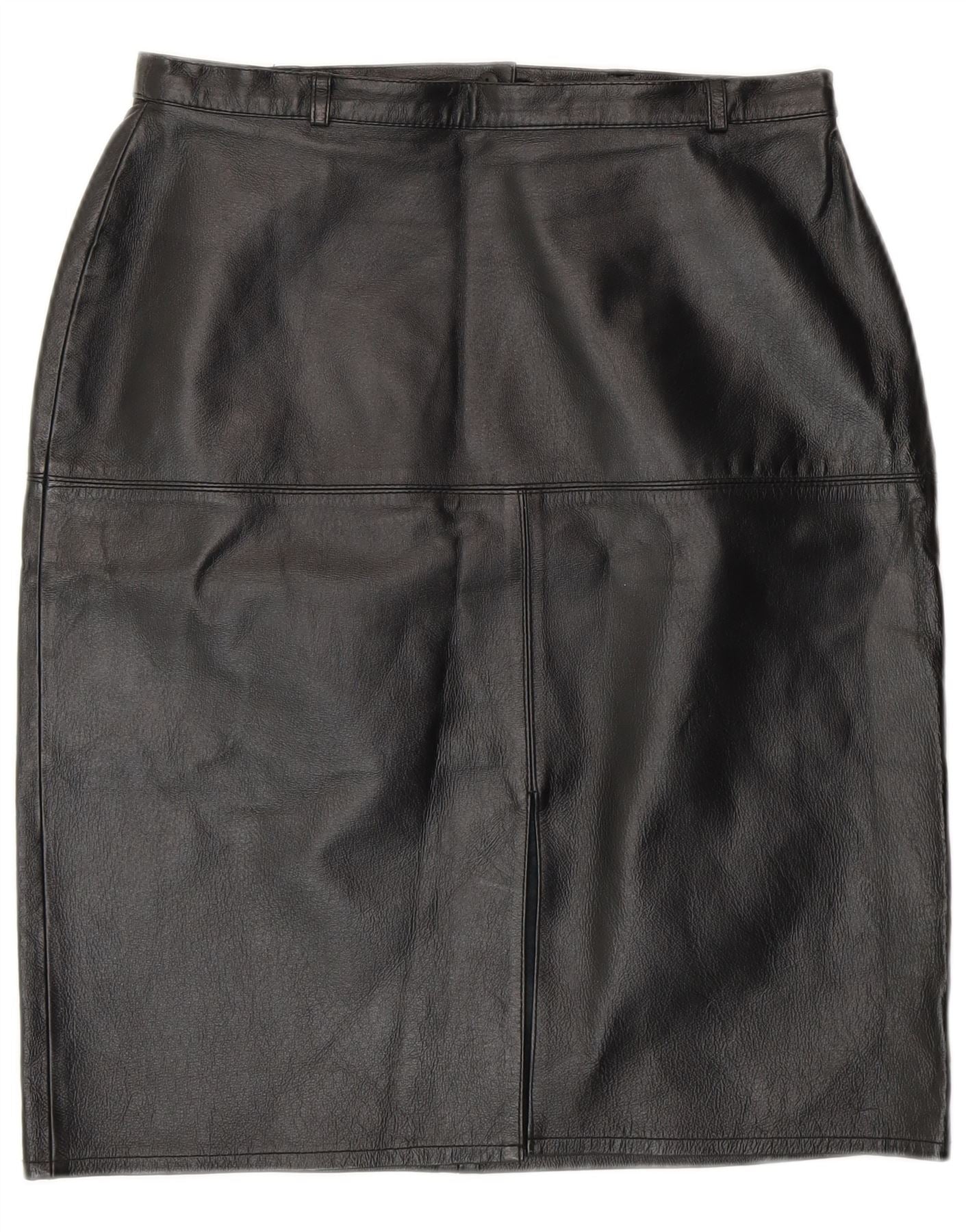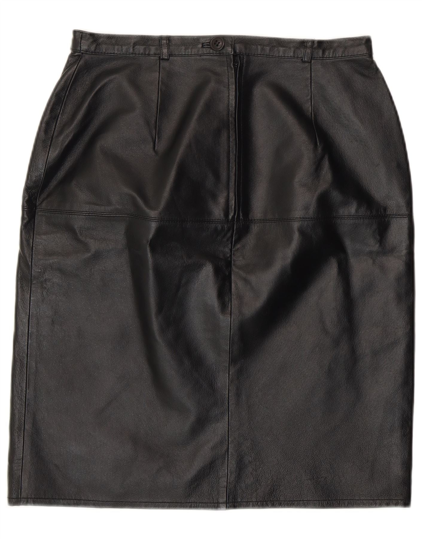 Винтажная женская кожаная юбка-карандаш UK 12 Medium W28 Черная кожа