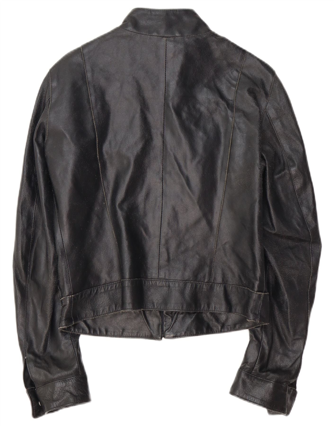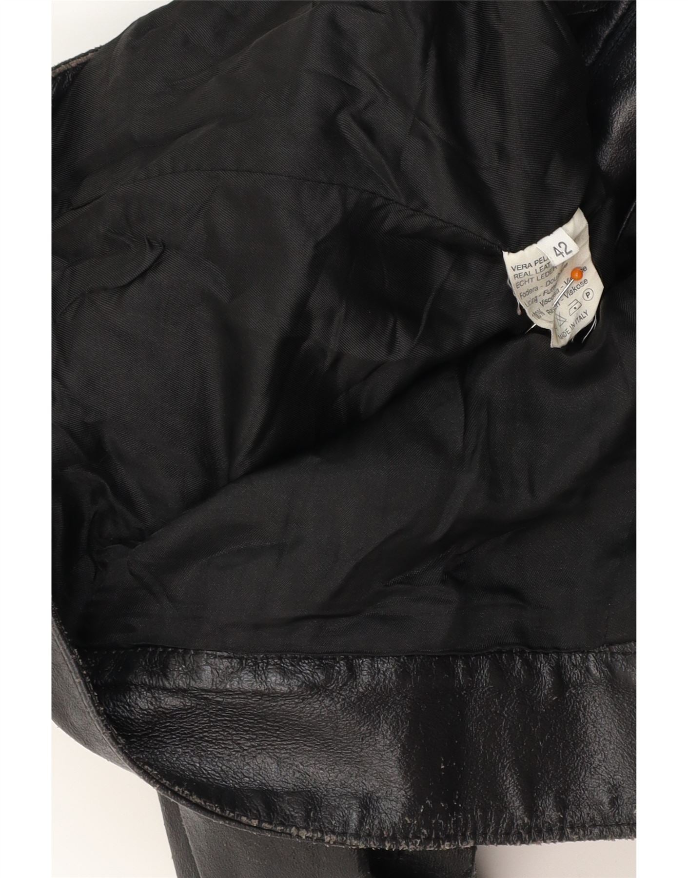 VINTAGE Женская кожаная куртка-гонщик IT 42 Medium Black Leather