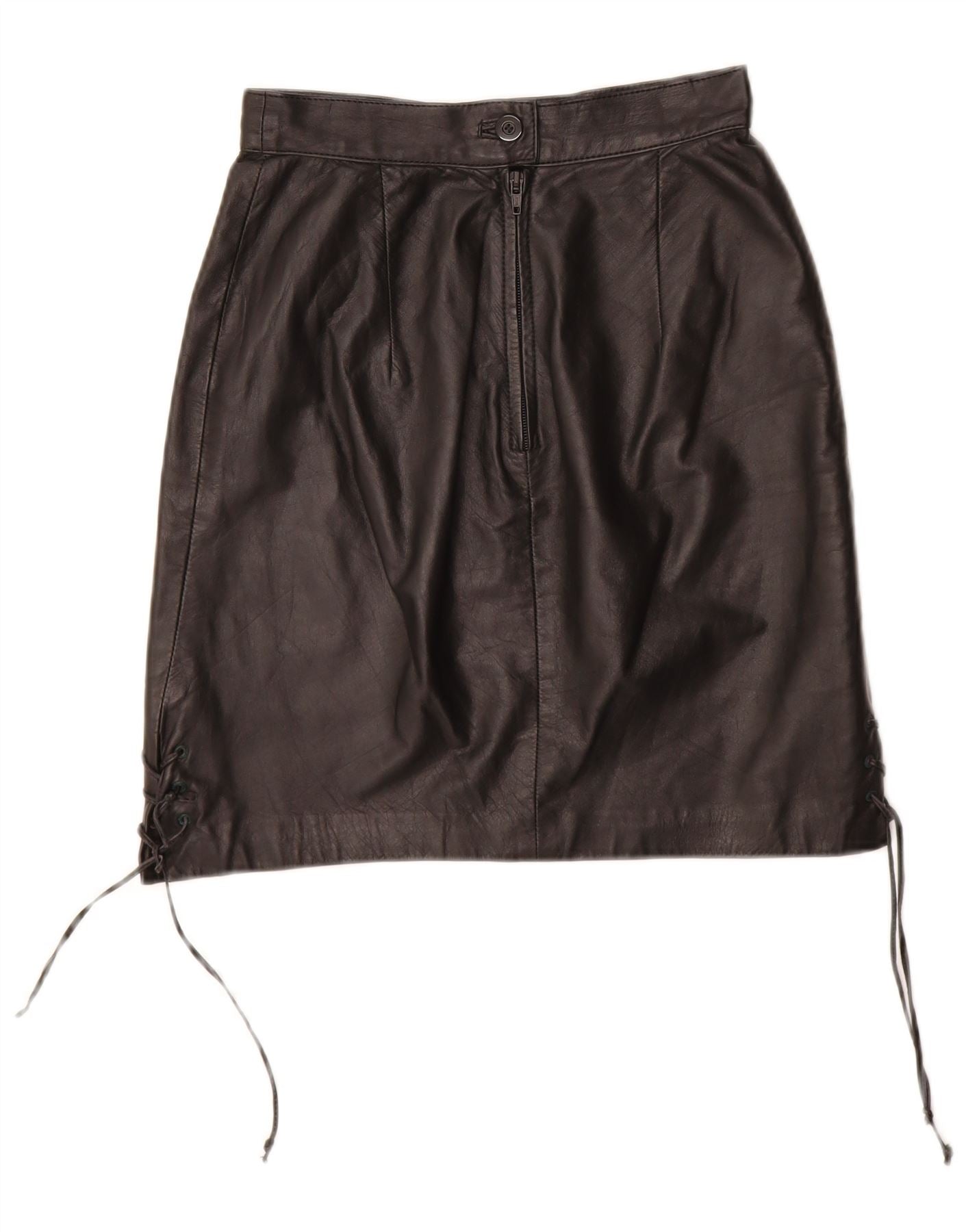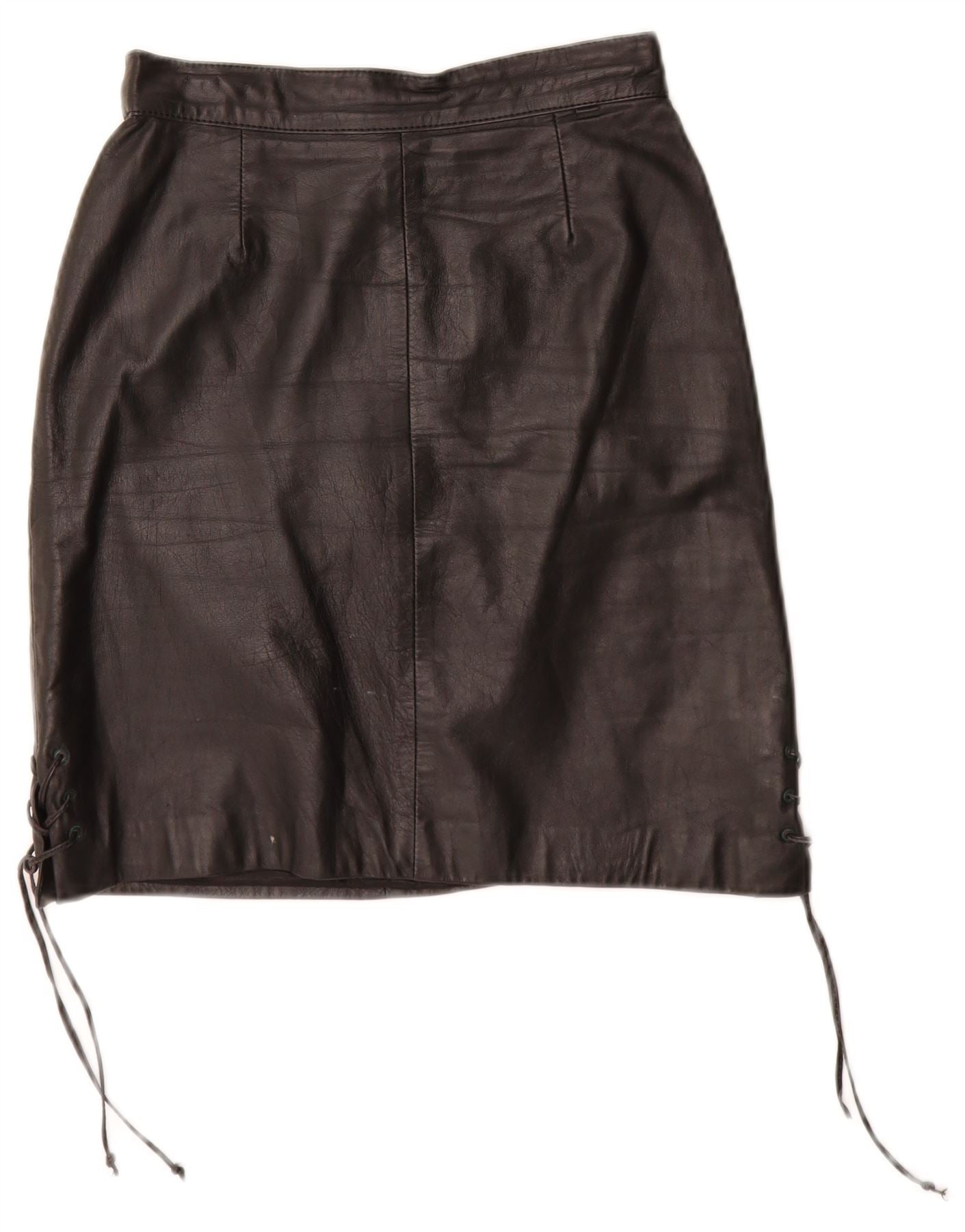 ВИНТАЖНАЯ женская кожаная юбка EU 34 XS W24 Черная кожа
