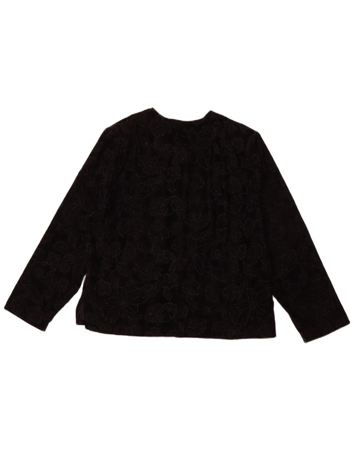 ВИНТАЖНАЯ женская блузка с длинными рукавами, Великобритания 16, большой черный цветочный принт