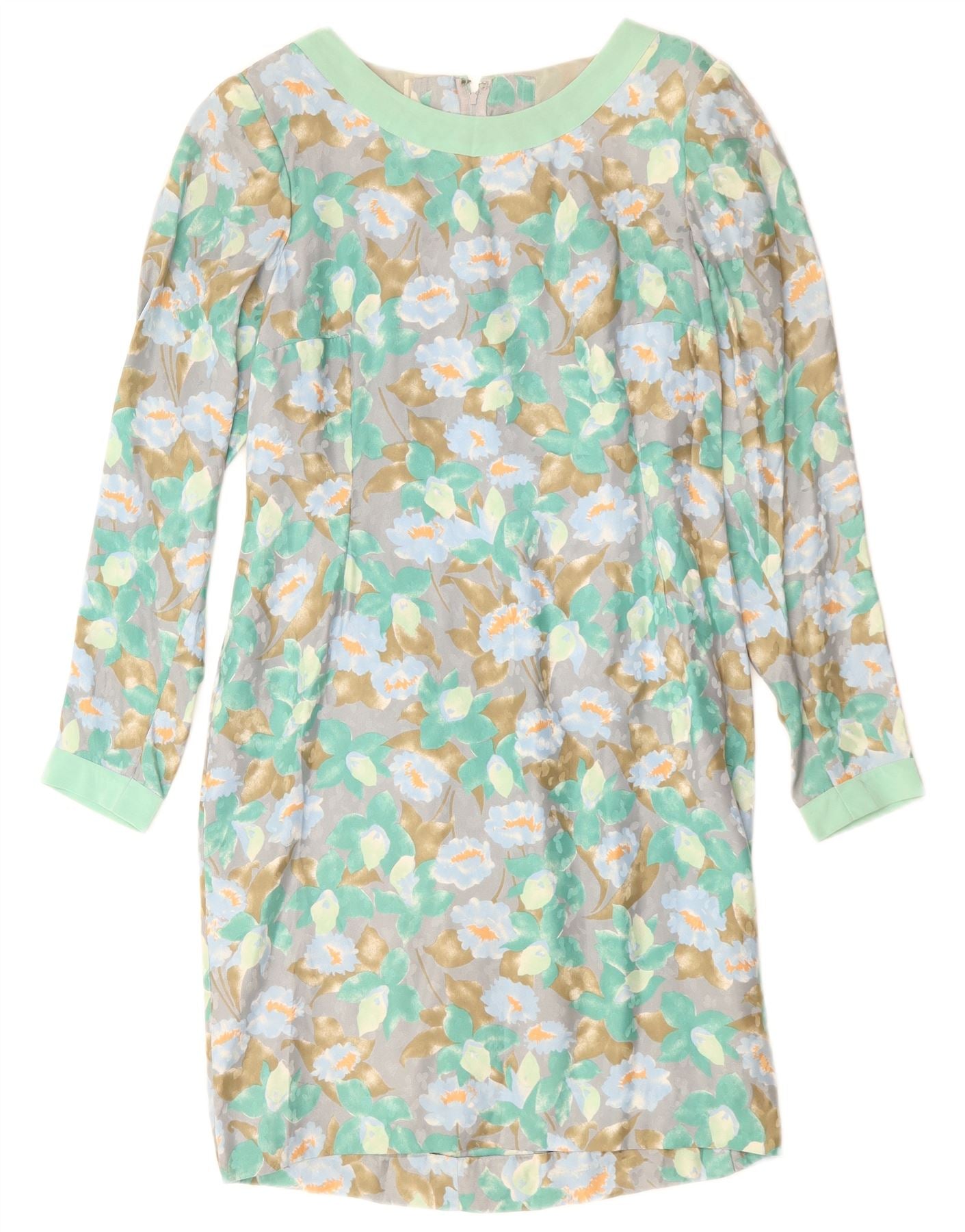 Винтажное женское платье-футляр с длинным рукавом, Великобритания 12, средний зеленый цвет с цветочным принтом