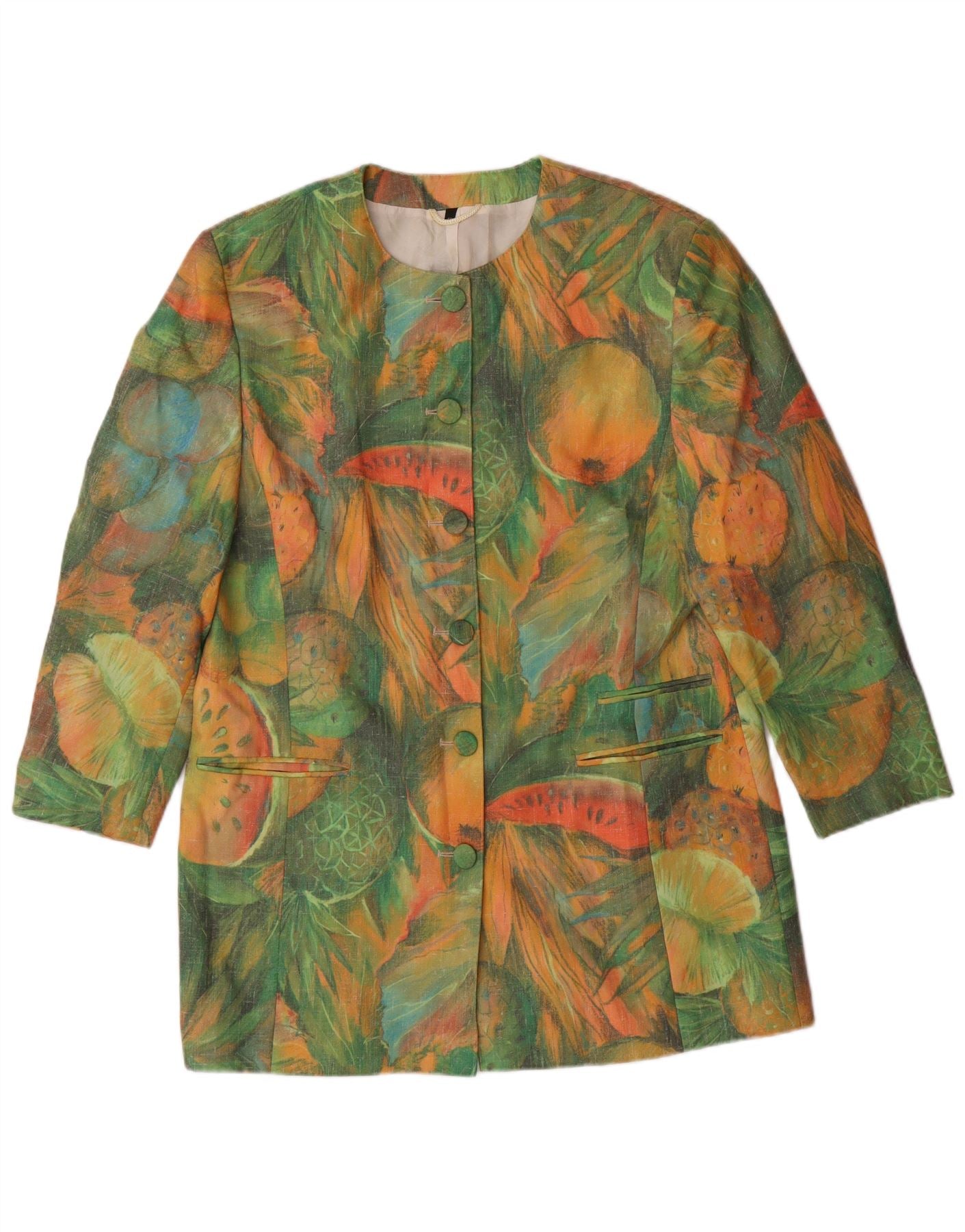 ВИНТАЖНЫЙ женский удлиненный пиджак с абстрактным узором EU 42, большой зеленый цвет