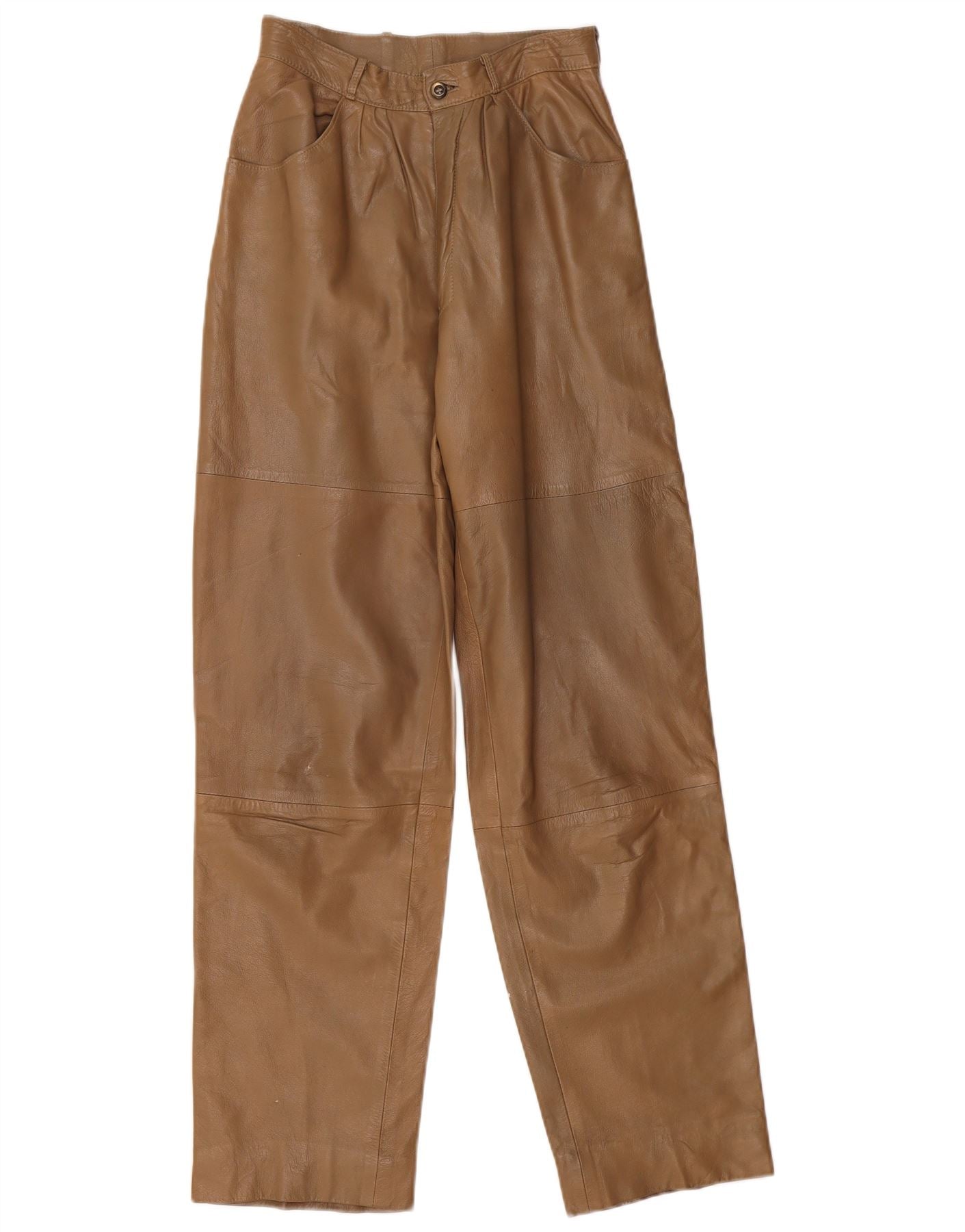 ВИНТАЖНЫЕ женские кожаные брюки свободного кроя W26 L32 Бежевые