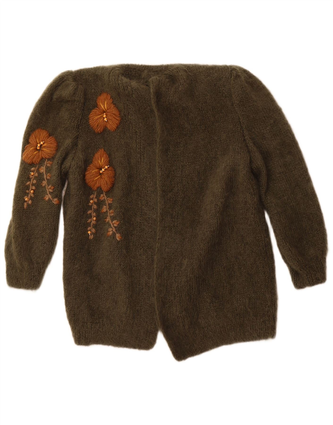 ВИНТАЖНЫЙ женский открытый кардиган, свитер UK 14, большой цвет хаки, мохер