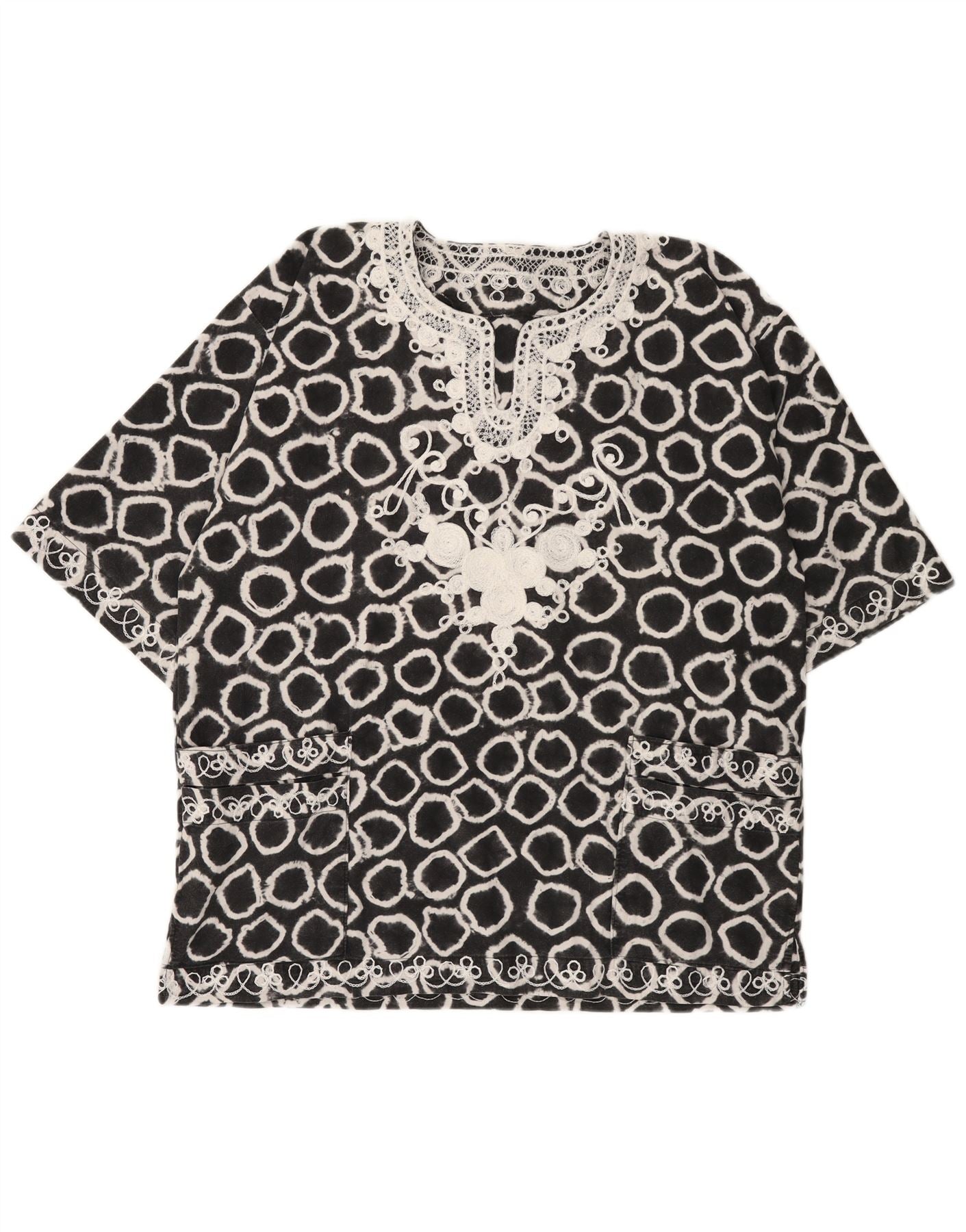 ВИНТАЖНАЯ женская объемная блузка с абстрактным узором, топ UK 18 XL, черный