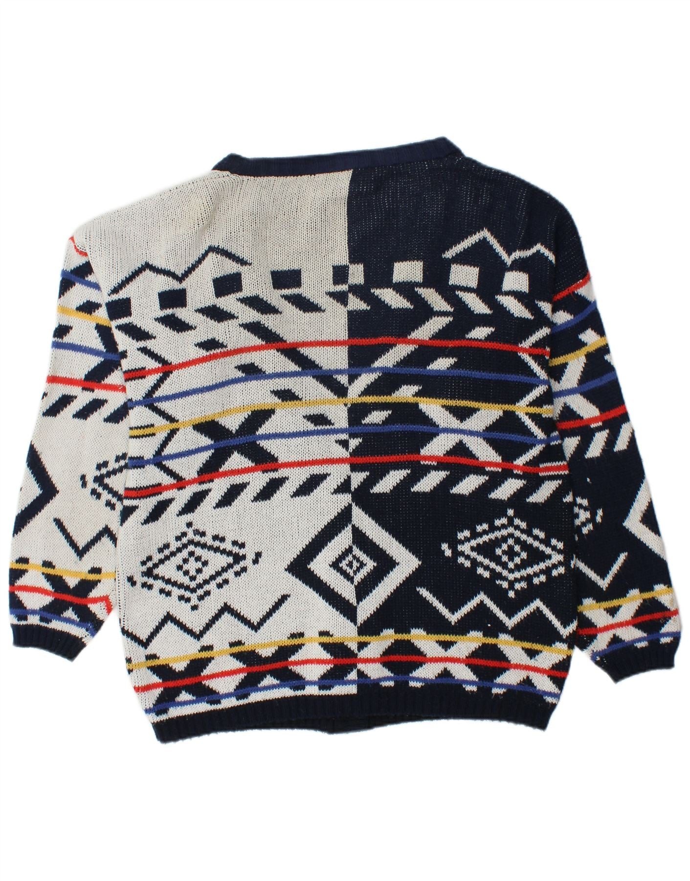 ВИНТАЖНЫЙ женский свободный кардиган-свитер UK 16, большой темно-синий с геометрическим узором