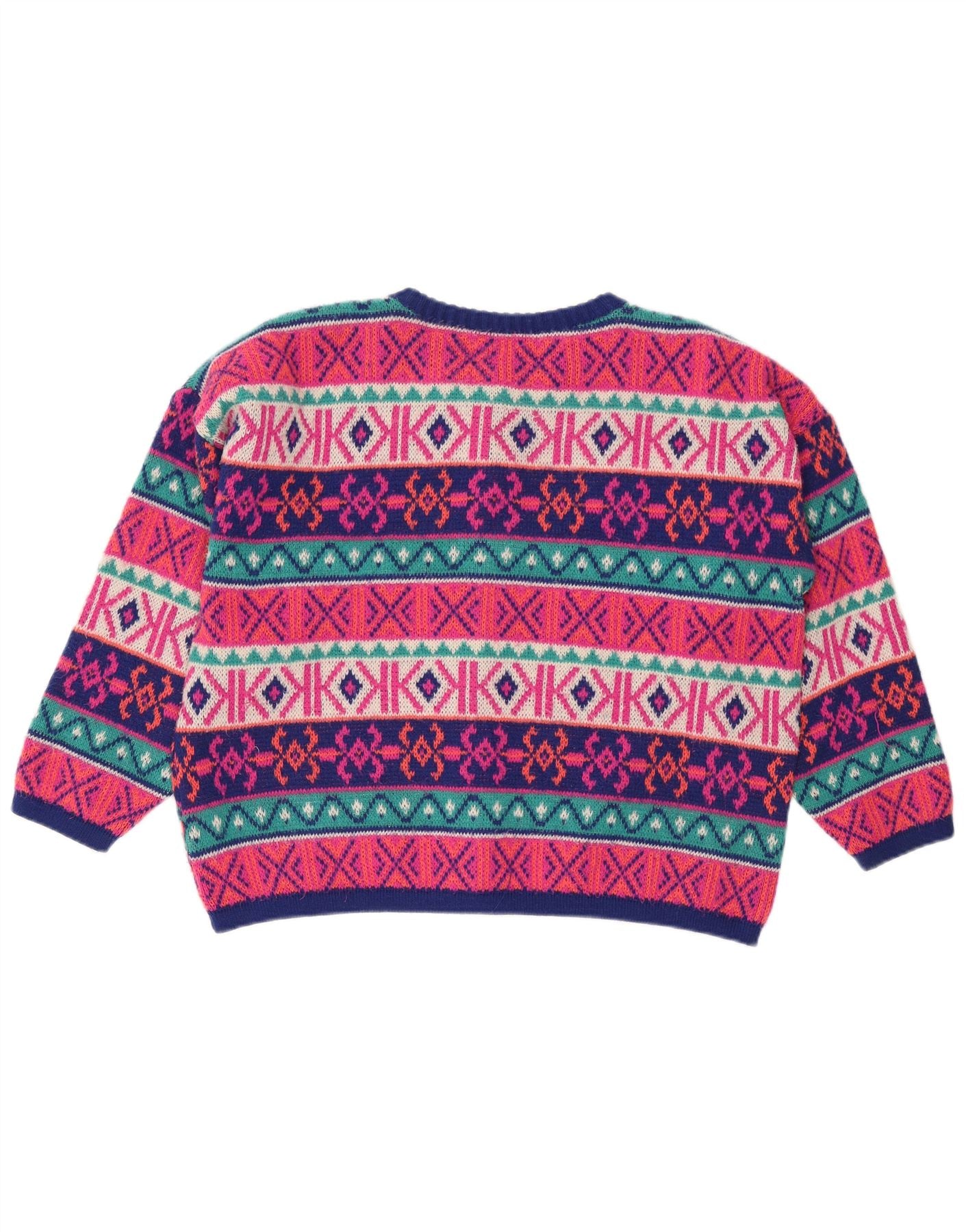 Винтажный женский свободный кардиган-свитер UK 18 XL, разноцветный жаккардовый узор